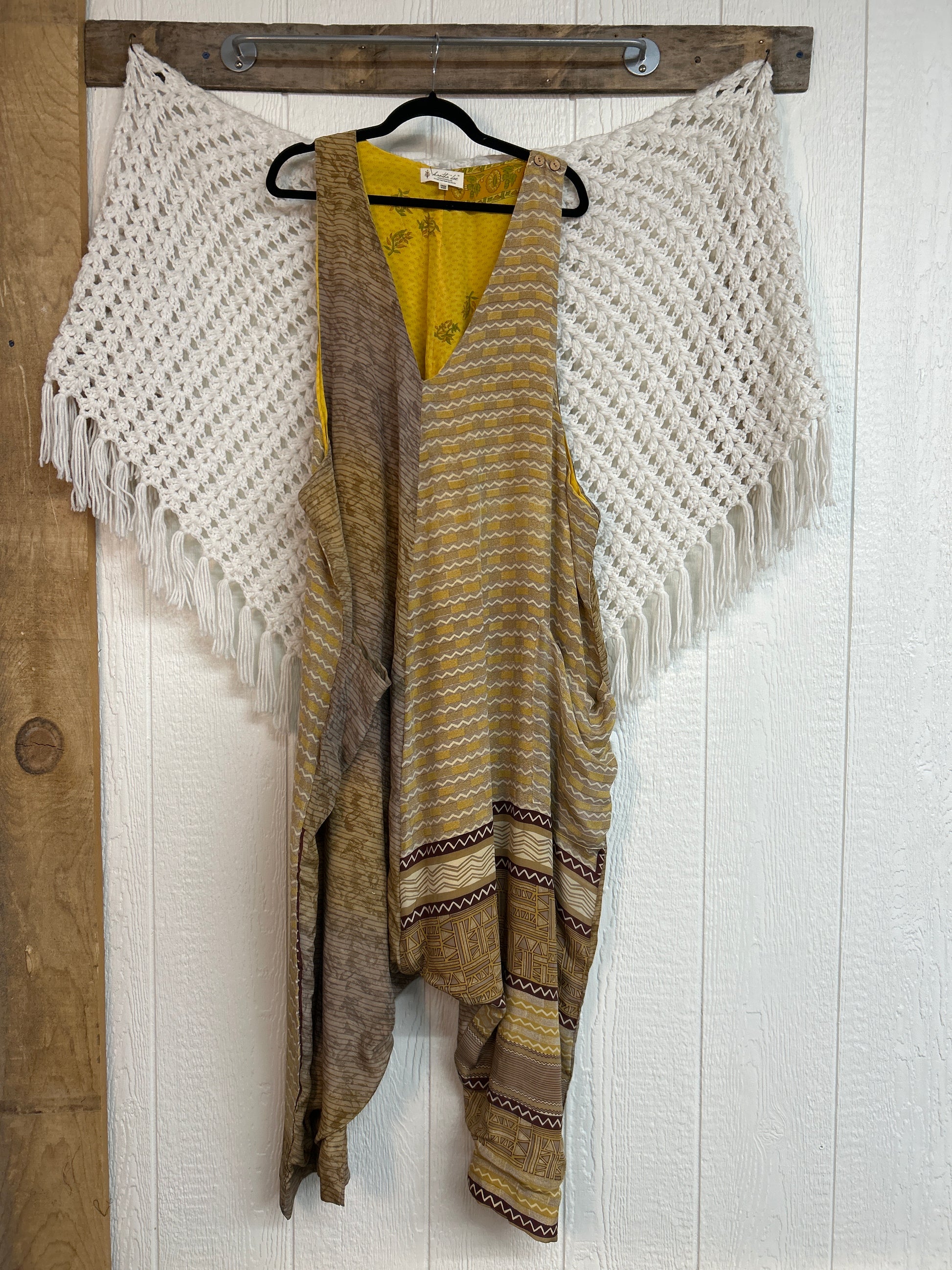 Crafted from our ultra lux vintage double crepe silk sari, this floaty wonder features a moderate drop couch , slouchy pockets