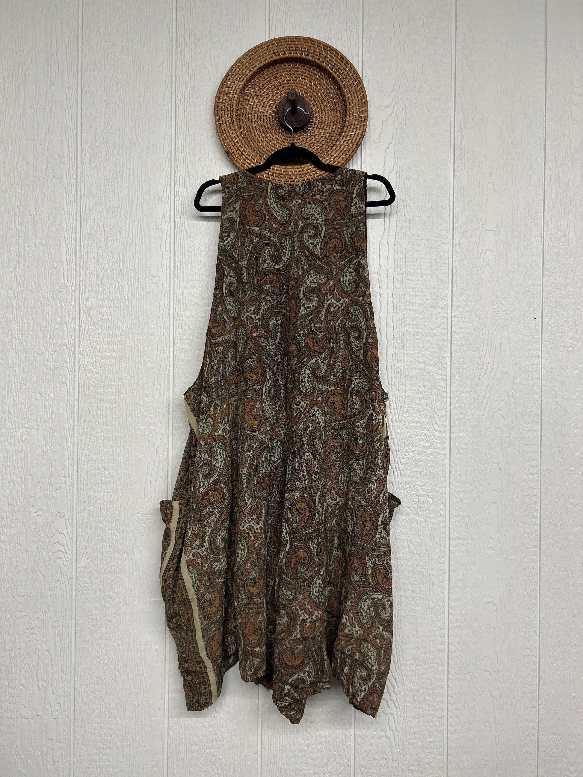 Disclosure: Our vintage styles have lived a full life before becoming the designs in our shop. Fabrics may have small threads or holes in the layers. Color inconsistency or small stains may be present. The saris are sewn together and extend the life of each design. Imperfections should be celebrated.