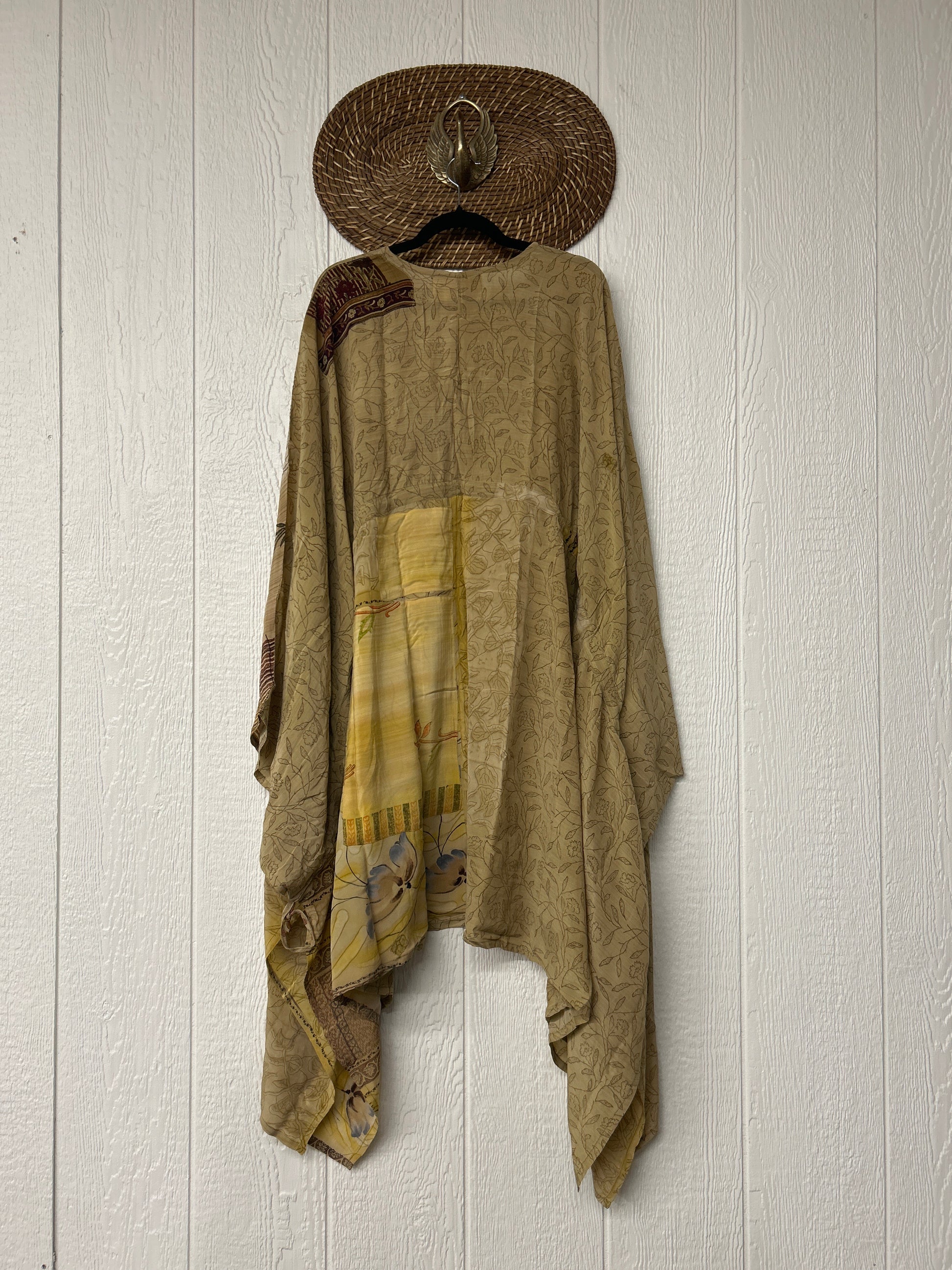 Fabrics may have small threads or holes in the layers. Color inconsistency or small stains may be present. The saris are sewn together and extend the life of each design.