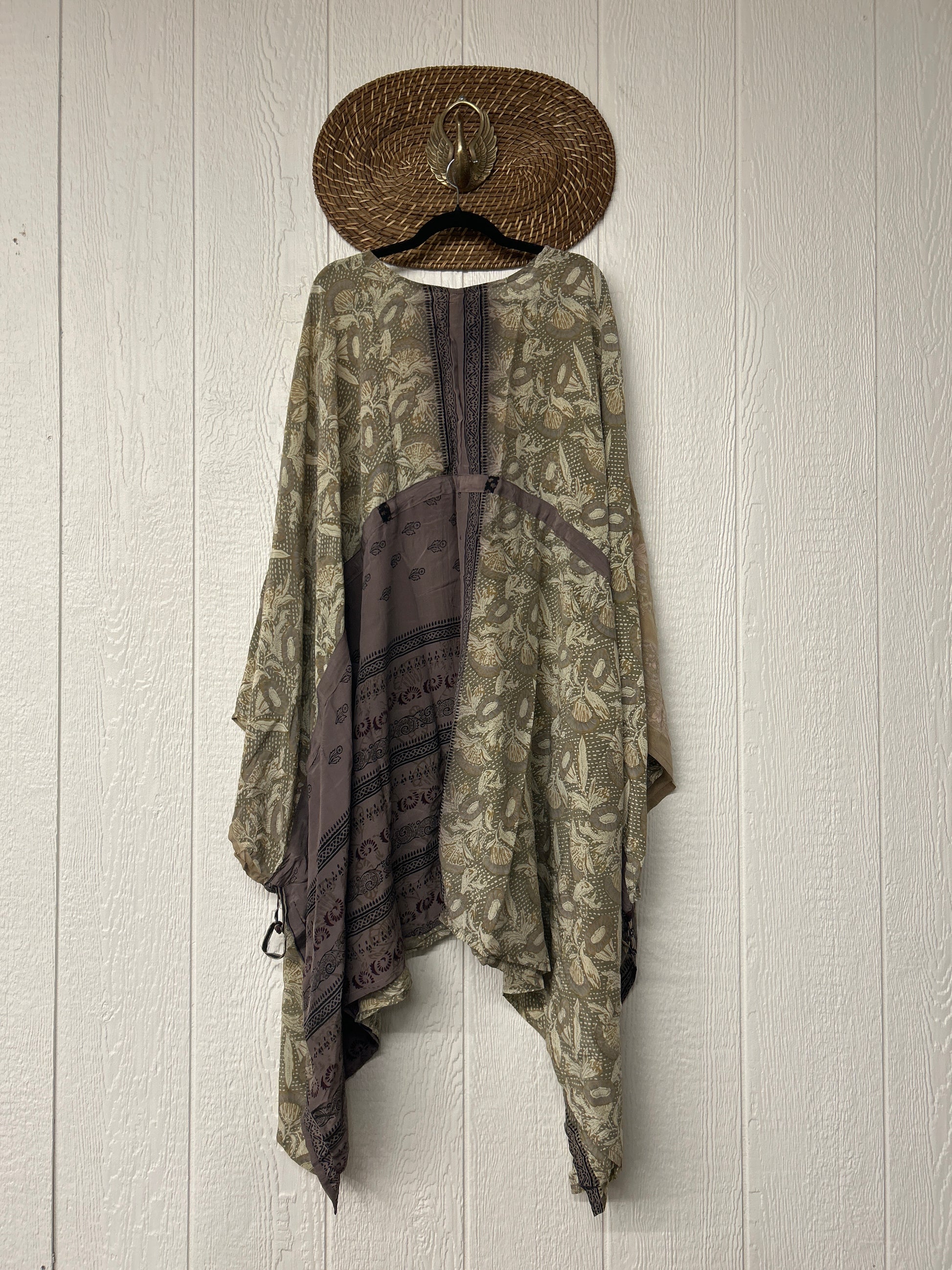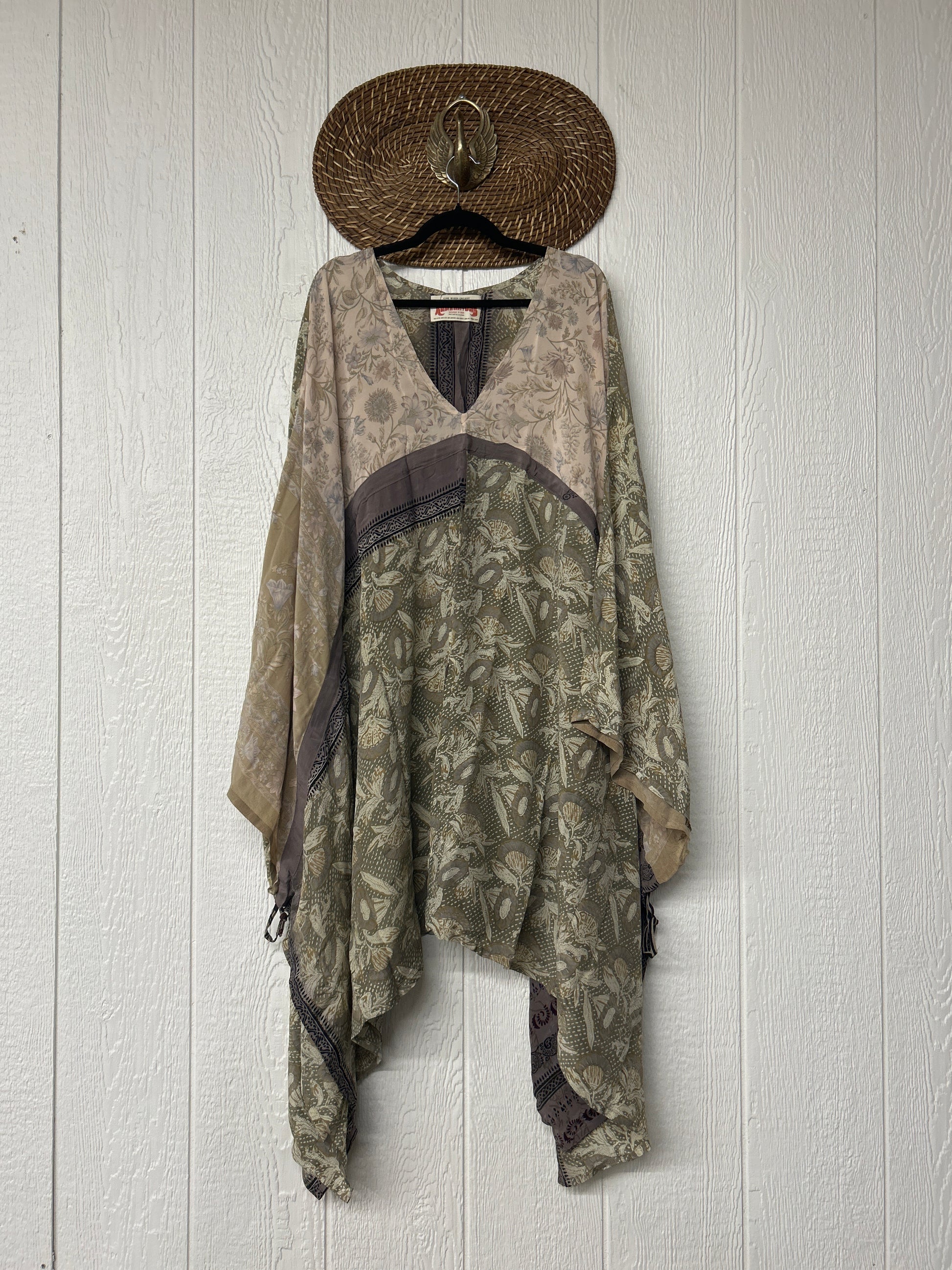Fabrics may have small threads or holes in the layers. Color inconsistency or small stains may be present. The saris are sewn together and extend the life of each design.