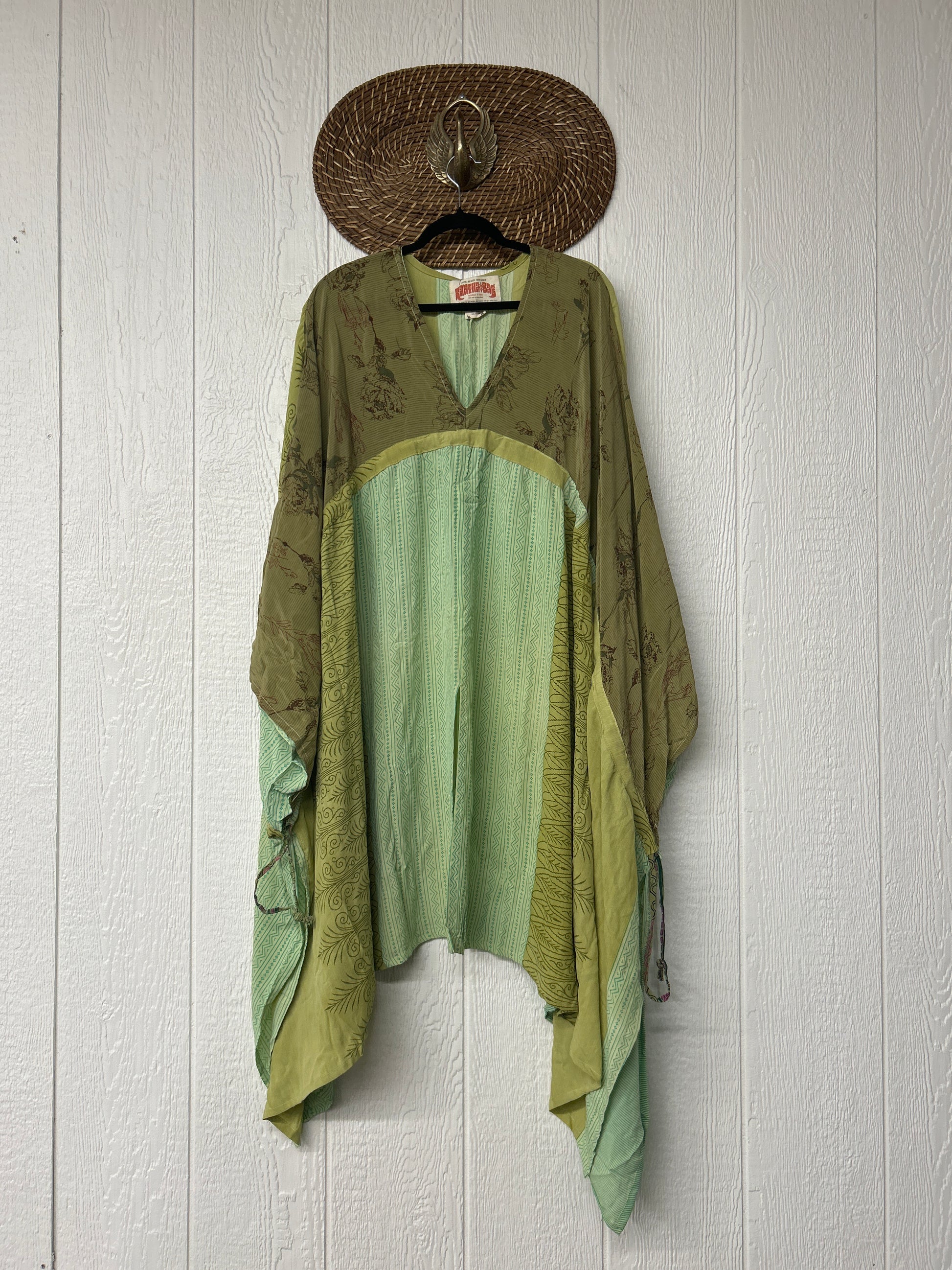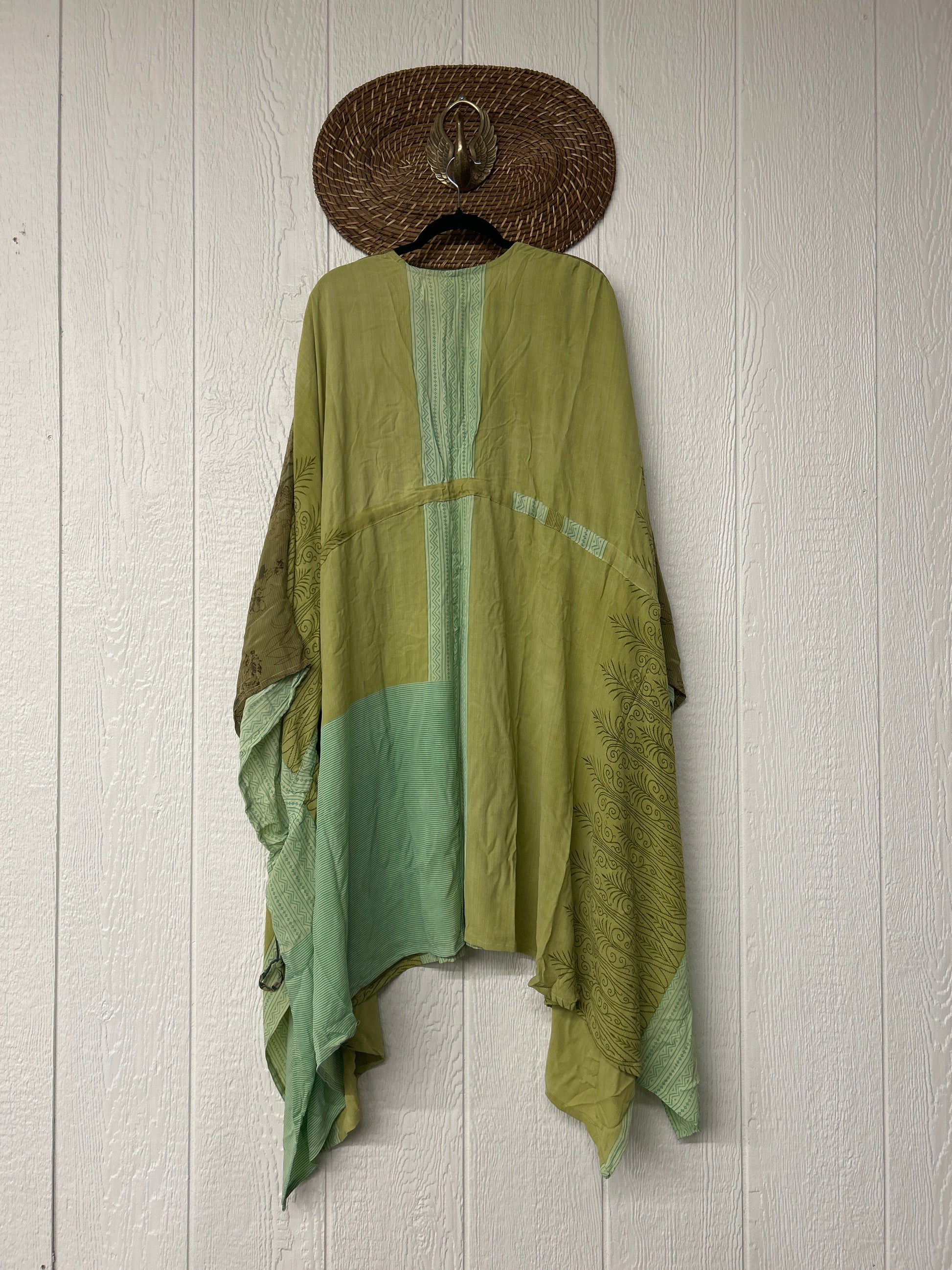 Fabrics may have small threads or holes in the layers. Color inconsistency or small stains may be present. The saris are sewn together and extend the life of each design.