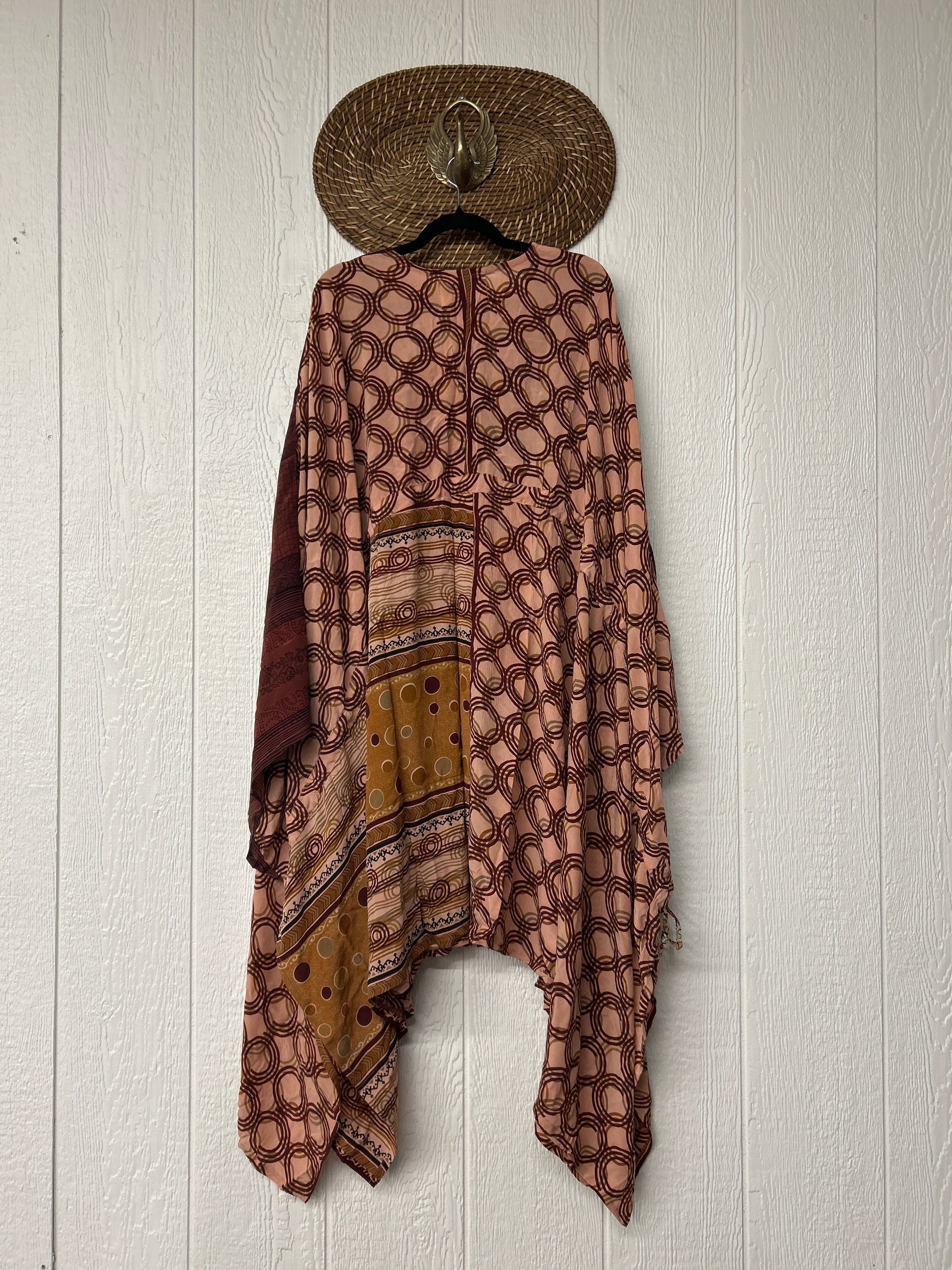 Fabrics may have small threads or holes in the layers. Color inconsistency or small stains may be present. The saris are sewn together and extend the life of each design.