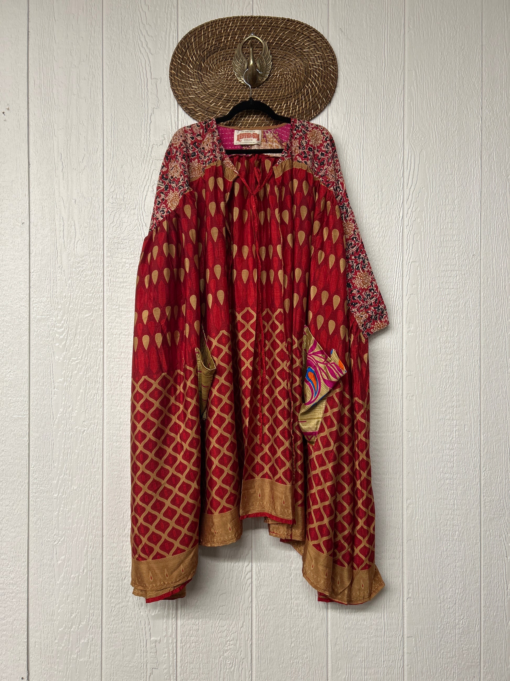 Twirl around to your heart's delight in our new Fleetwood Kimono. This floaty dream is a divine mix of our ultra lux Kantha embroidered vintage cotton and rasgulla sari. Features a tie neck closure and slouchy exterior pockets.