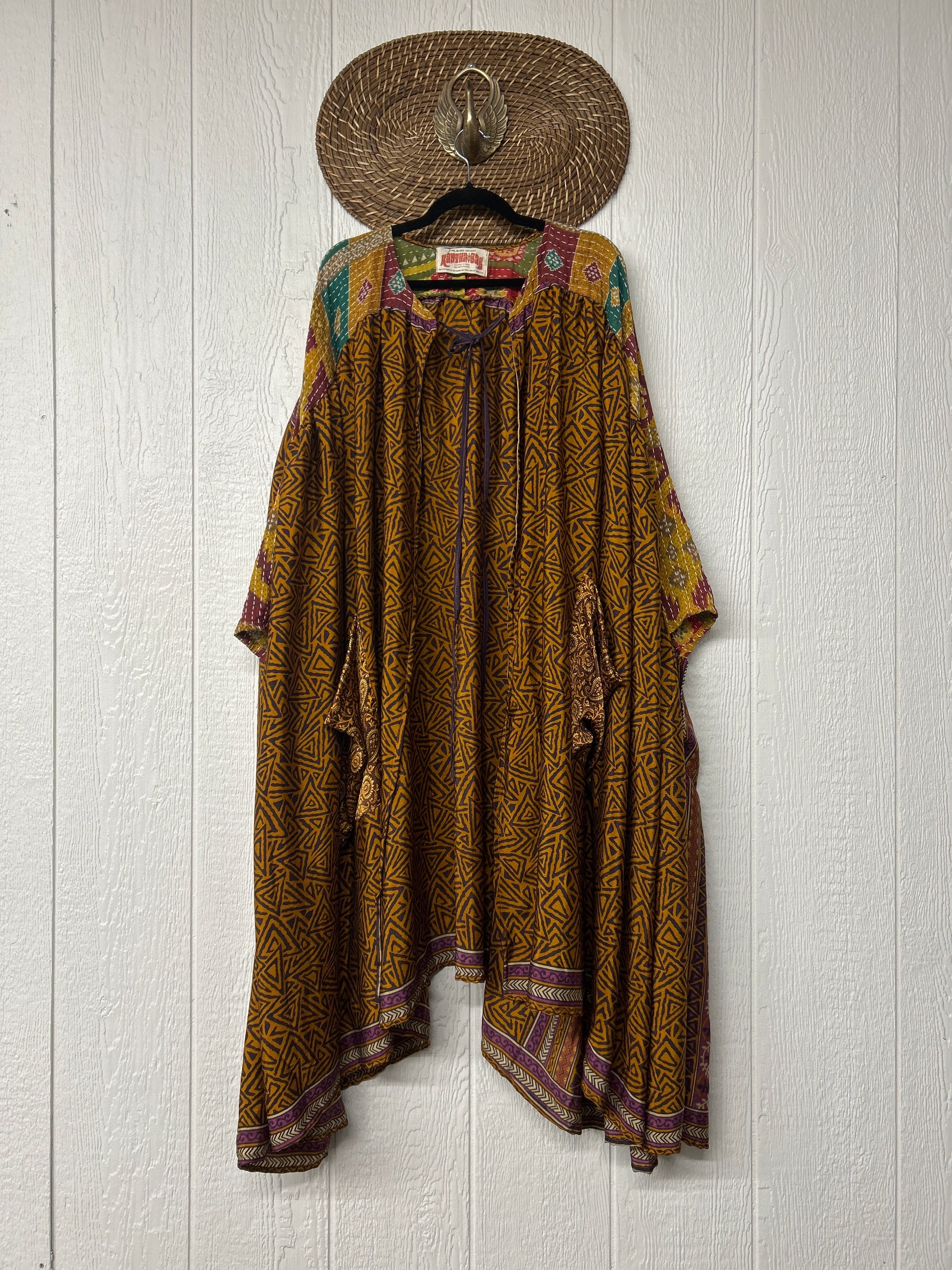 Twirl around to your heart's delight in our new Fleetwood Kimono. This floaty dream is a divine mix of our ultra lux Kantha embroidered vintage cotton and rasgulla sari. Features a tie neck closure and slouchy exterior pockets.