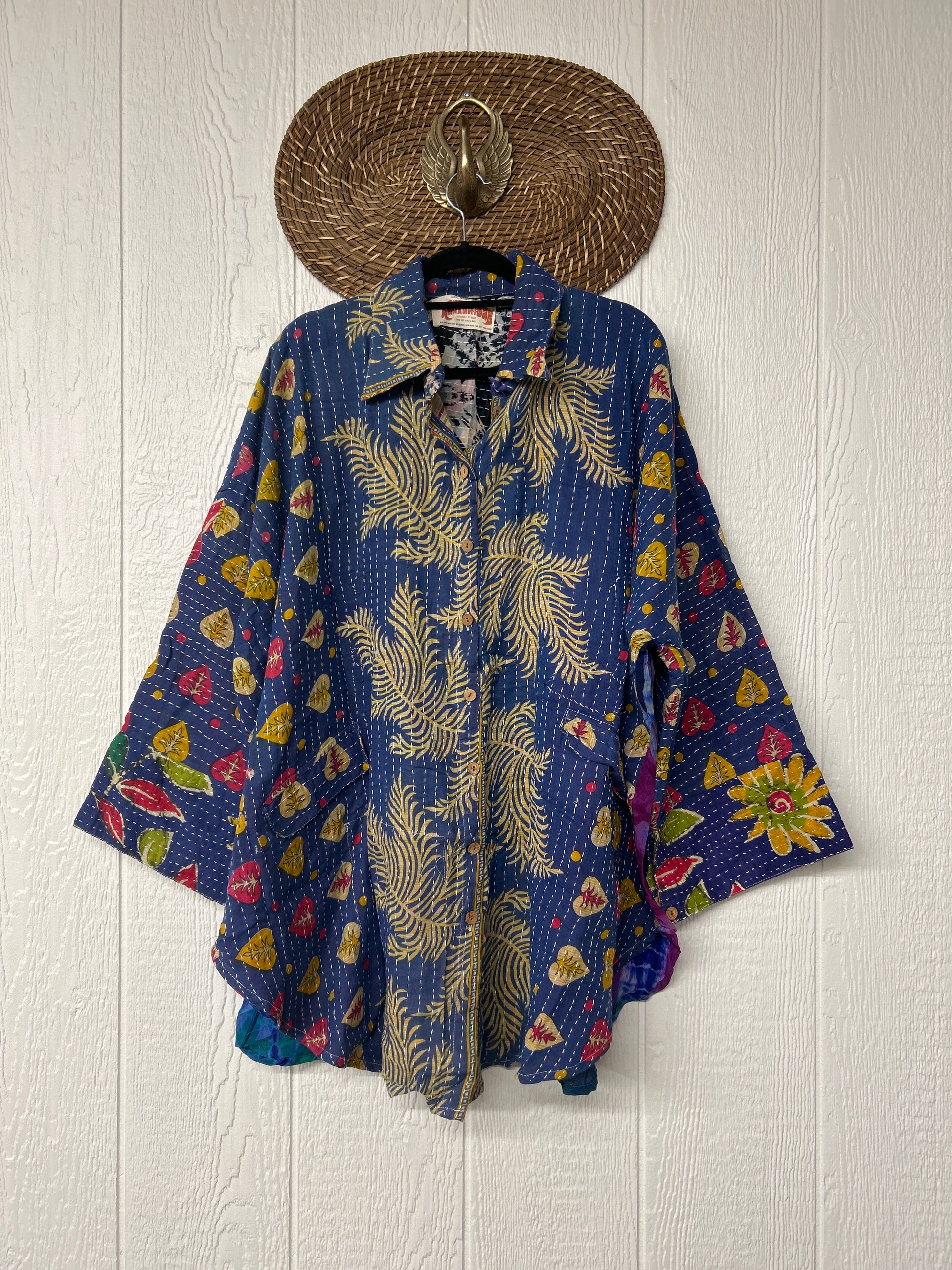 Made from our vintage cotton embroidered sari this billowy dream features a crepe panel in the back, functional buttons, two deep pockets in the front and a curved bottom.