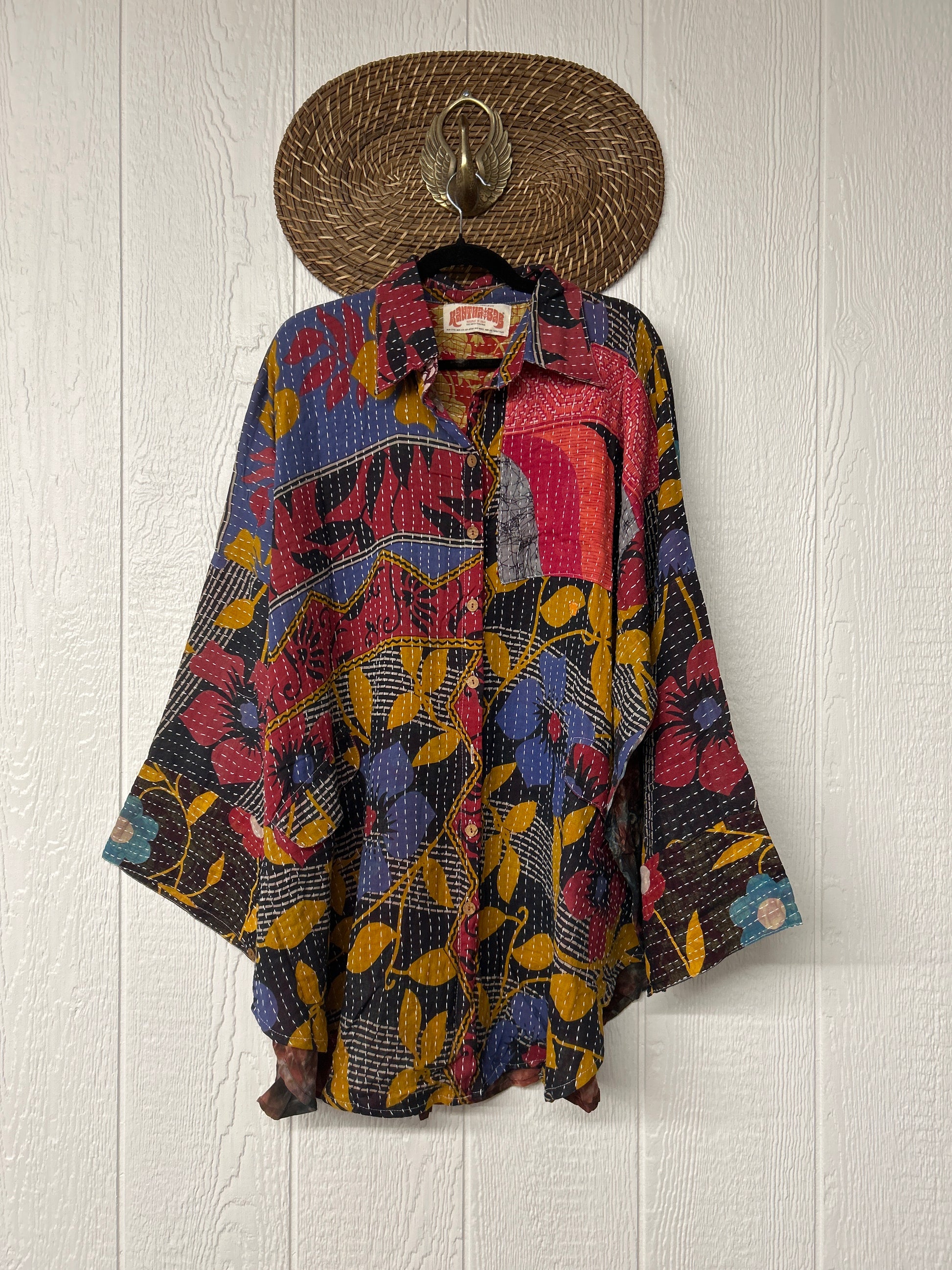 Disclosure: Our vintage styles have lived a full life before becoming the designs in our shop. Fabrics may have small threads or holes in the layers. Color inconsistency or small stains may be present.