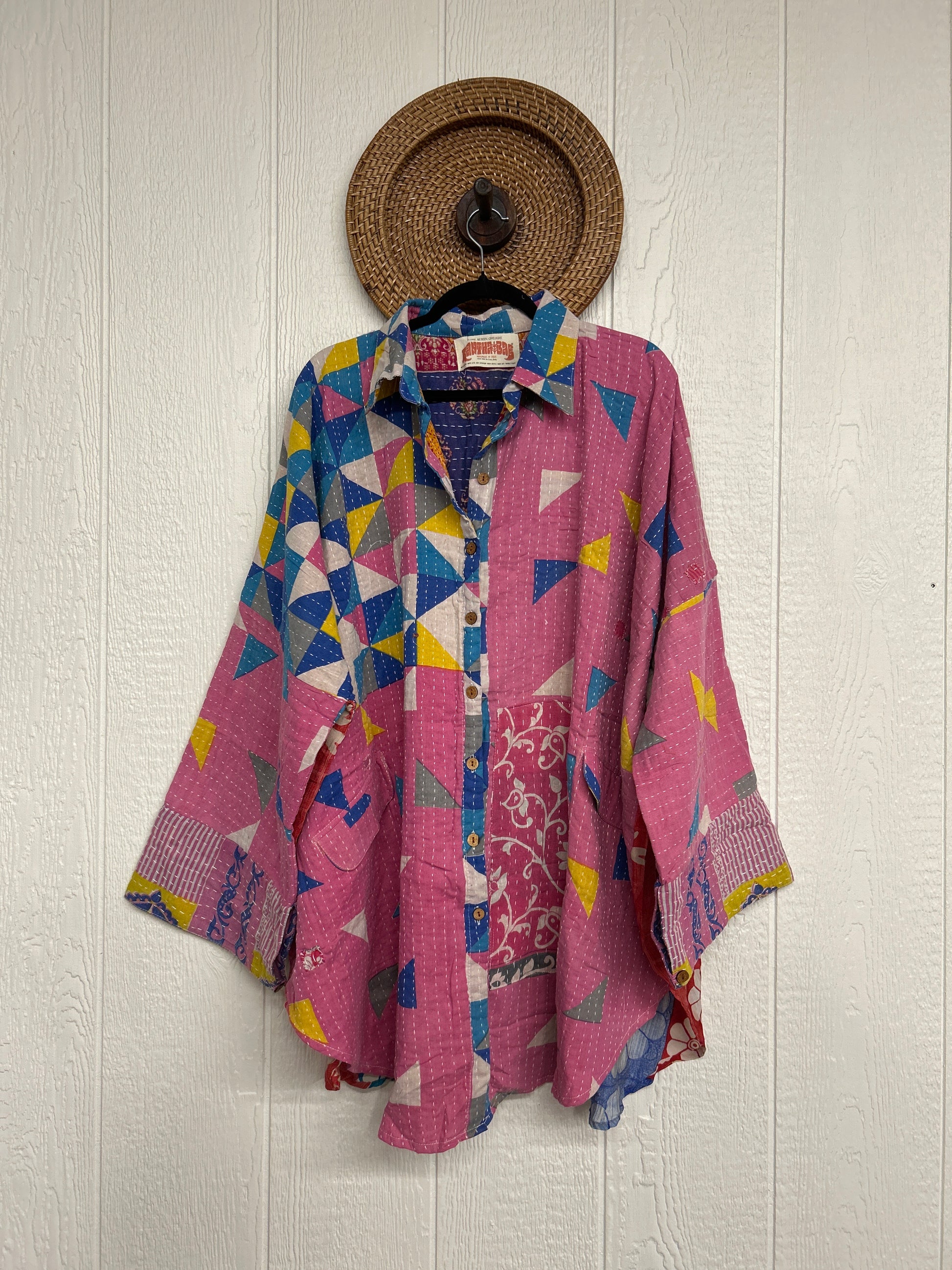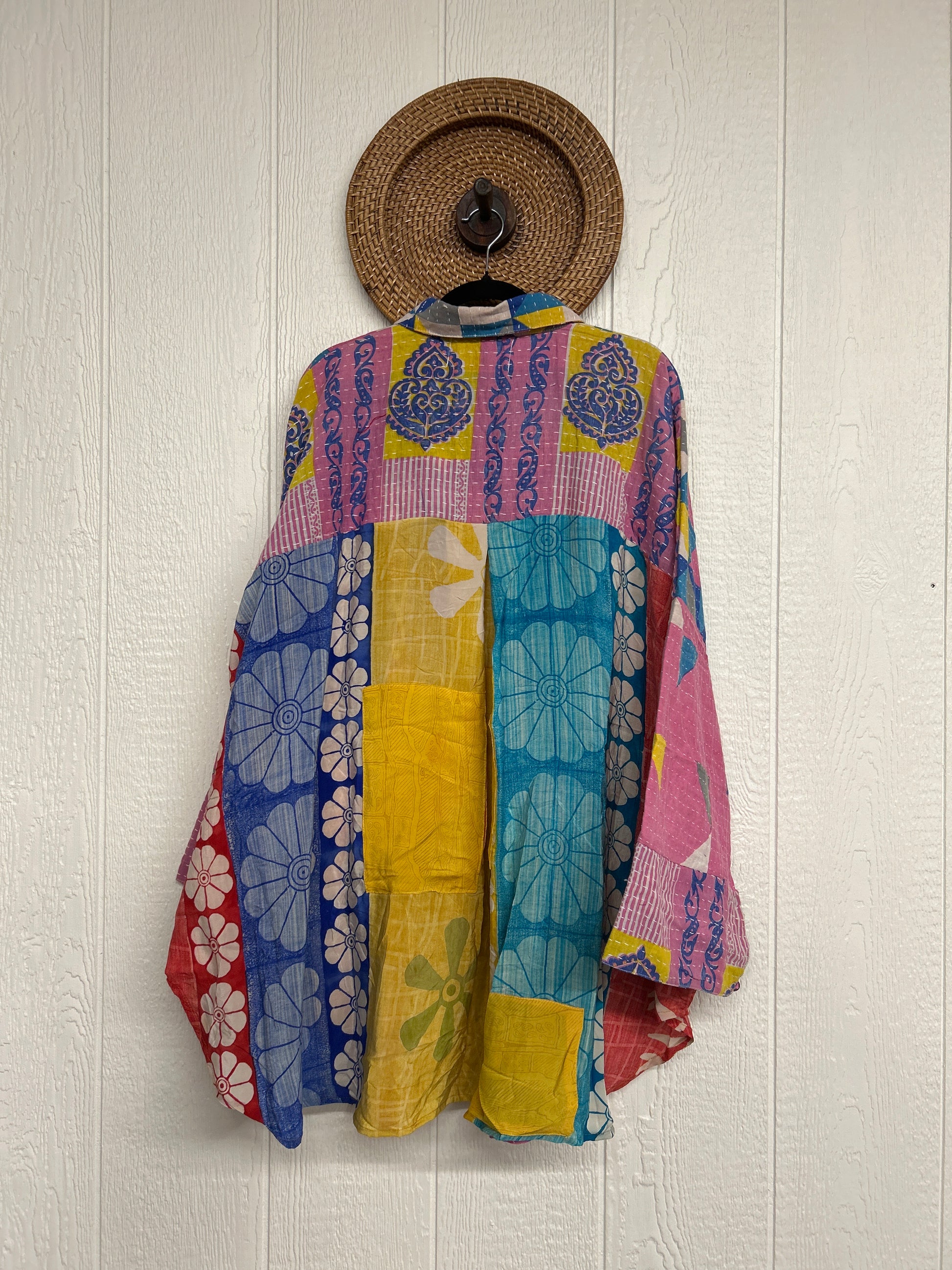 Made from our vintage cotton embroidered sari this billowy dream features a crepe panel in the back, functional buttons, two deep pockets in the front and a curved bottom.