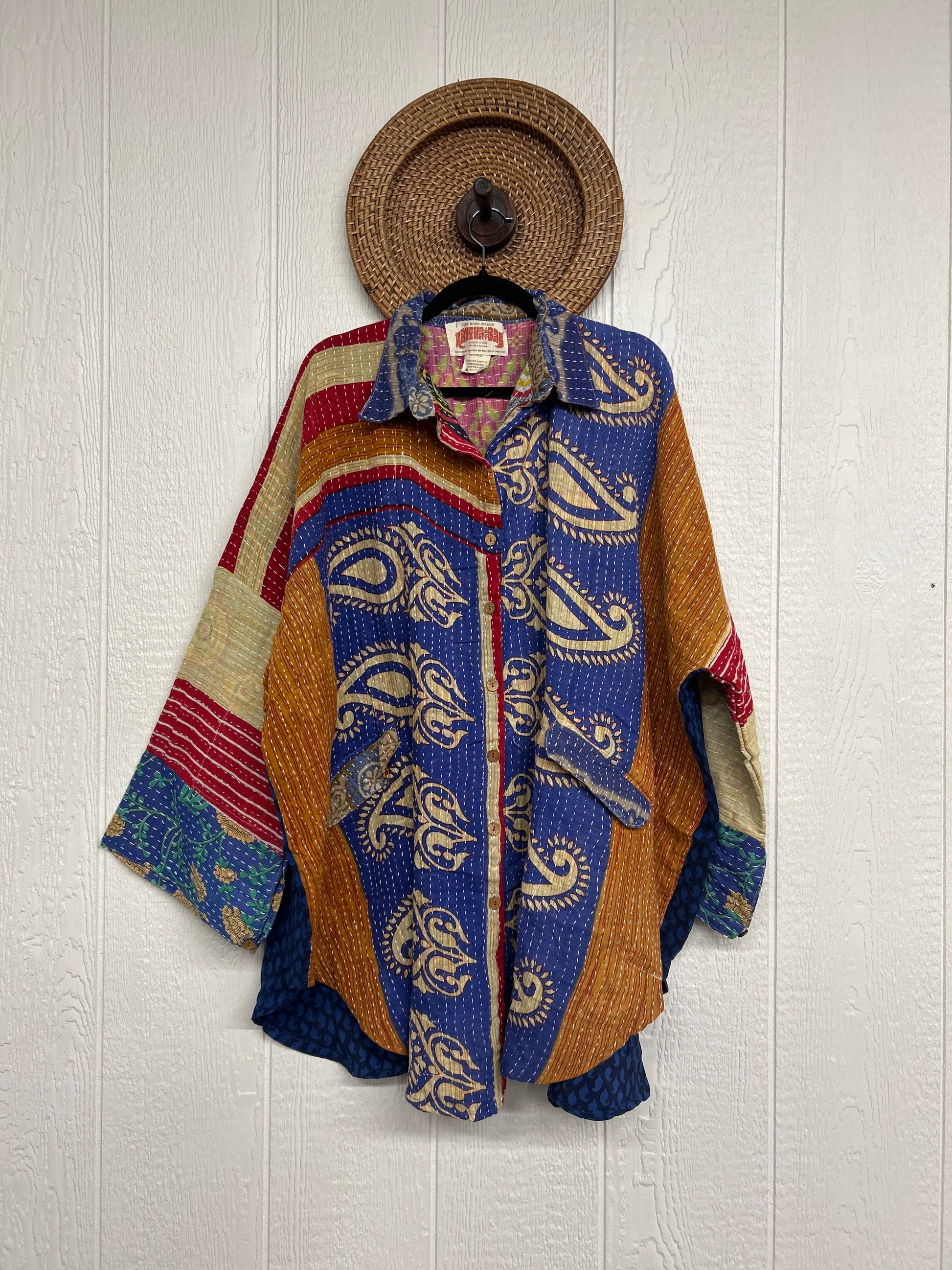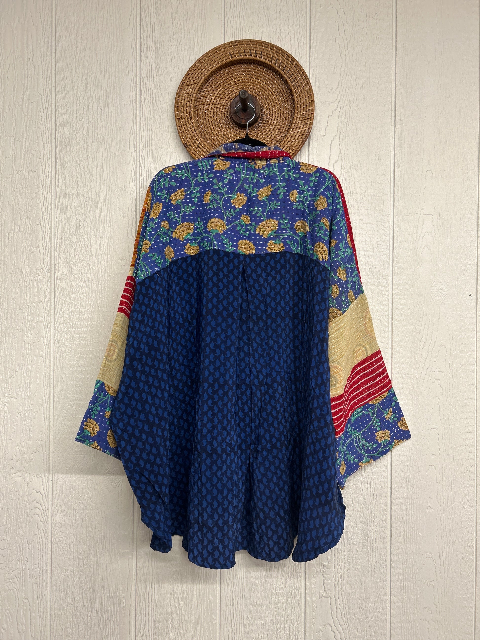 Made from our vintage cotton embroidered sari this billowy dream features a crepe panel in the back, functional buttons, two deep pockets in the front and a curved bottom.