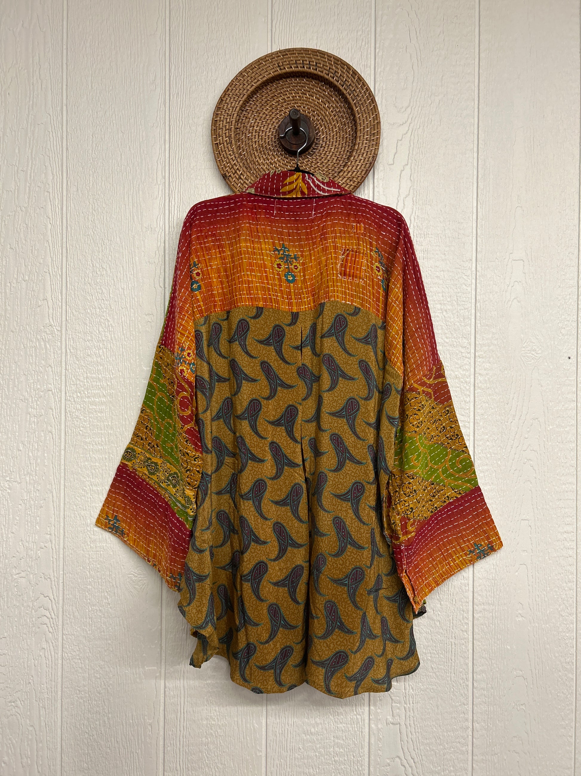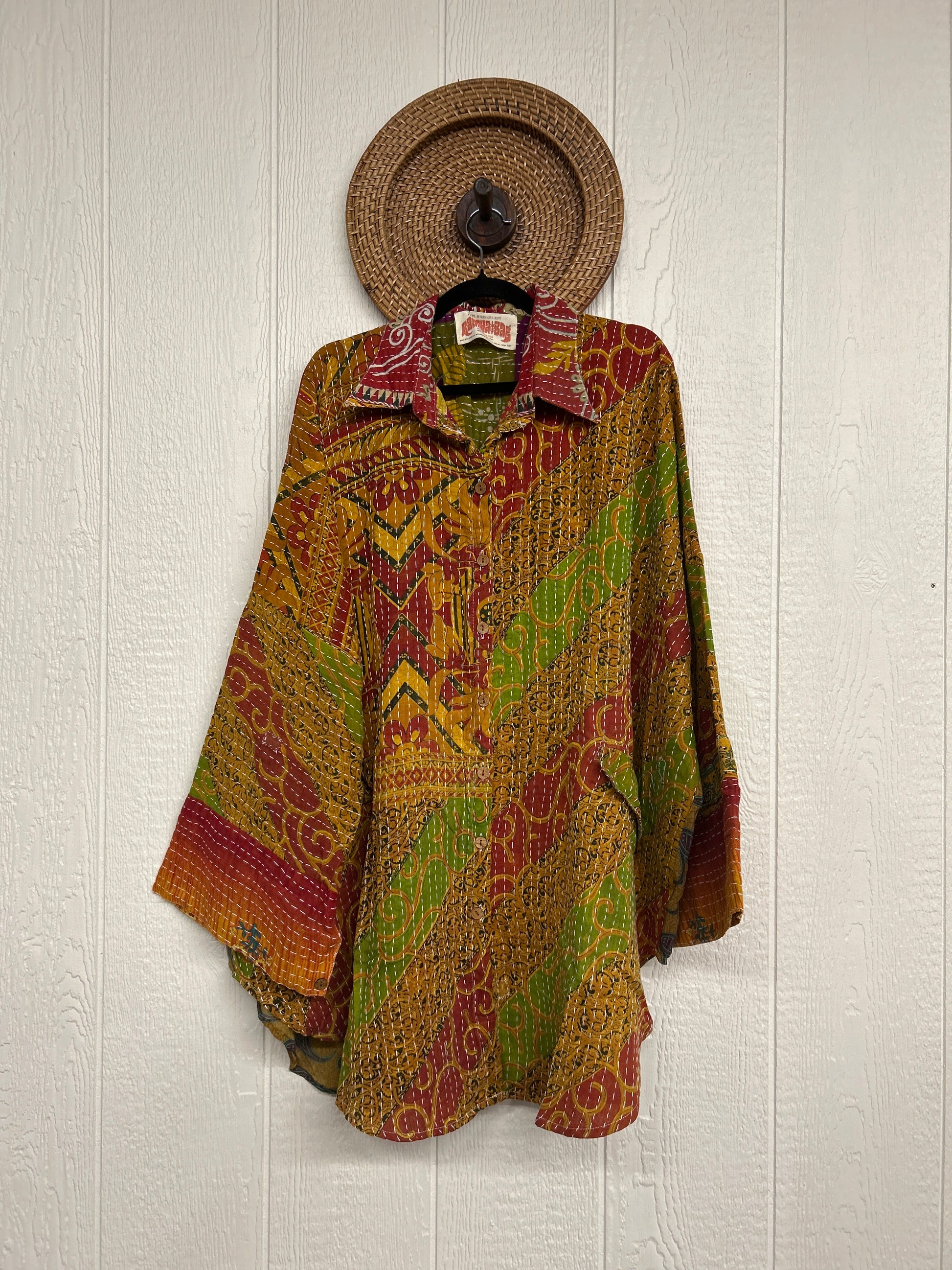 Disclosure: Our vintage styles have lived a full life before becoming the designs in our shop. Fabrics may have small threads or holes in the layers. Color inconsistency or small stains may be present.