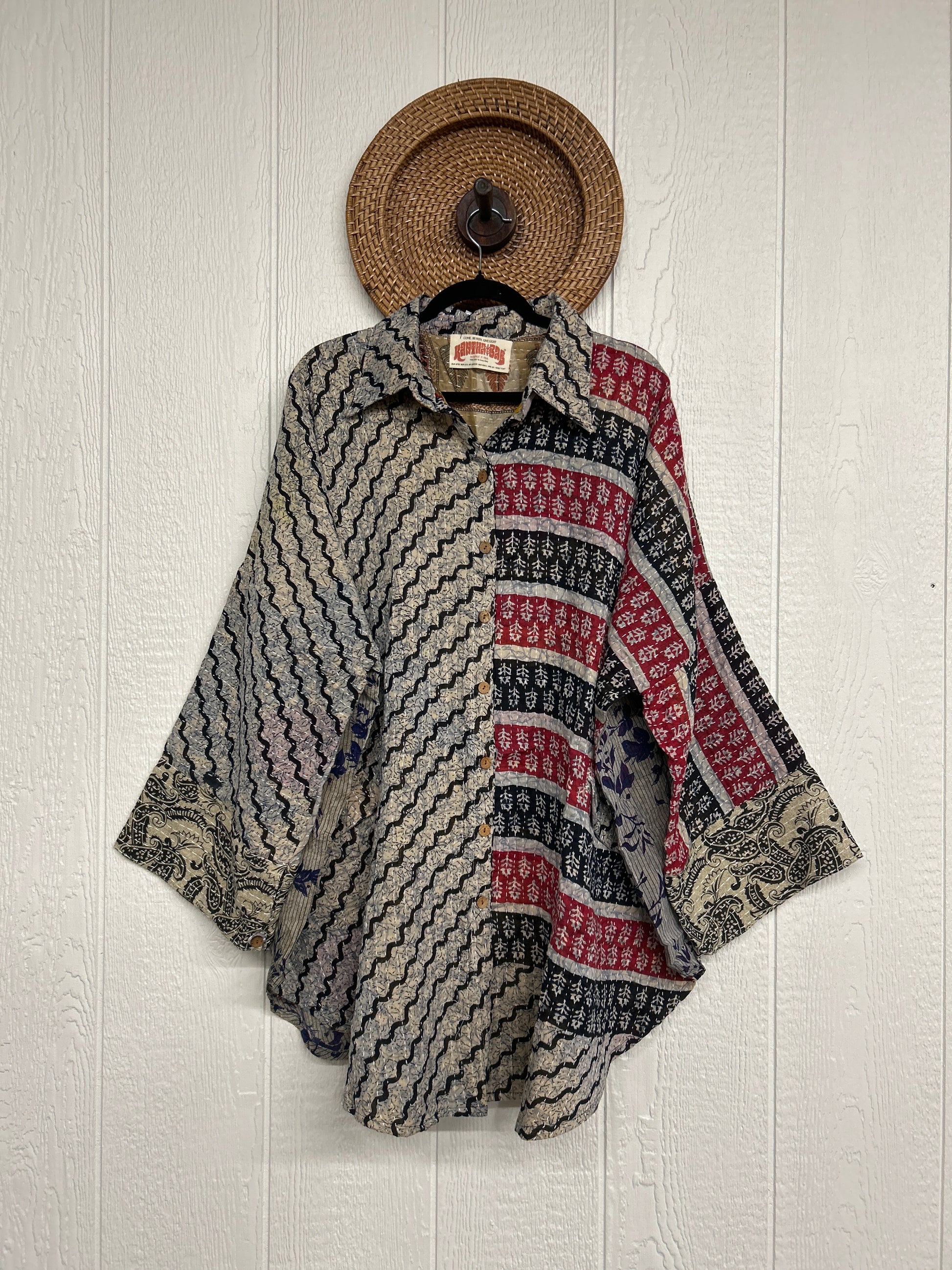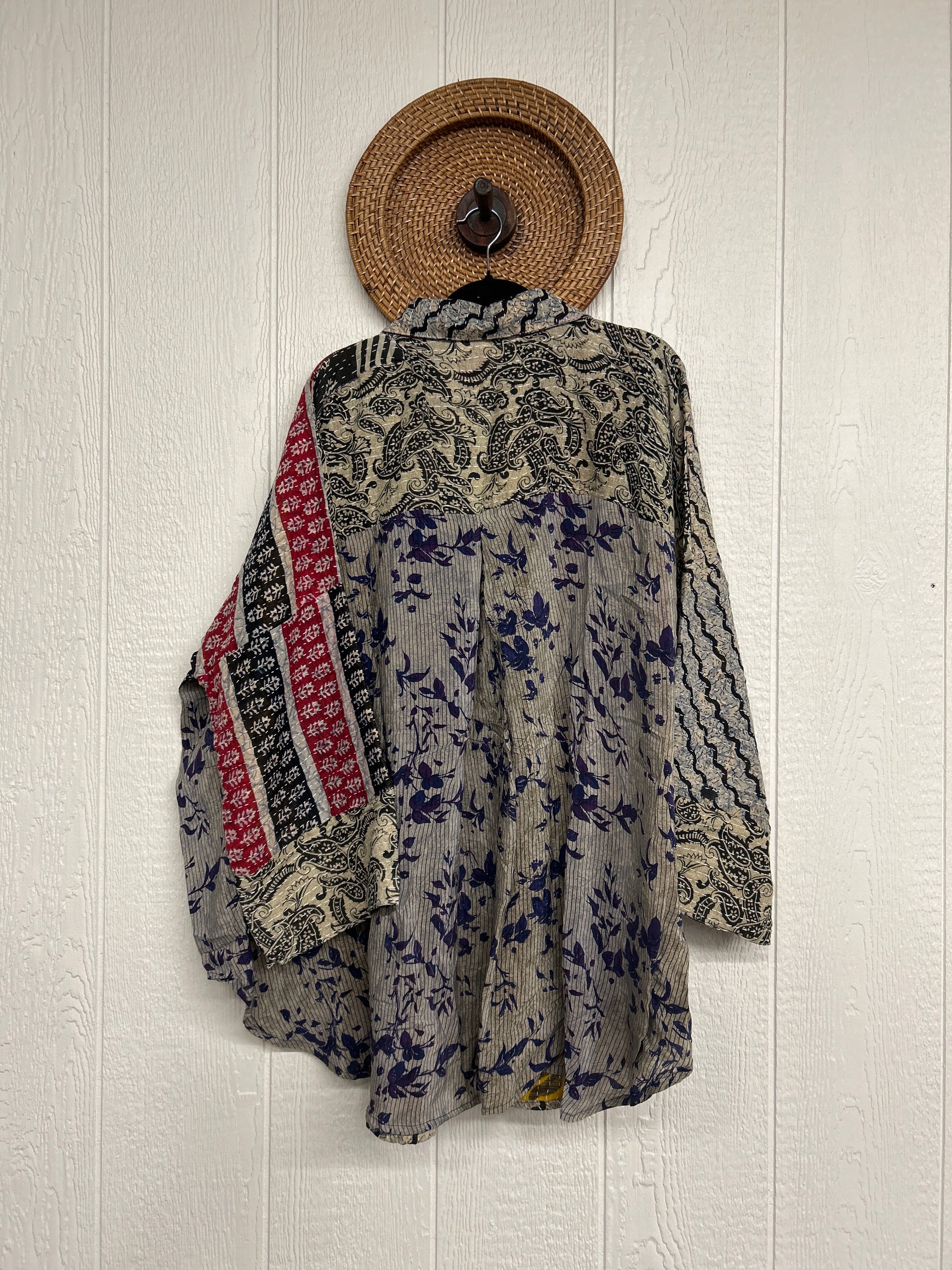 Made from our vintage cotton embroidered sari this billowy dream features a crepe panel in the back, functional buttons, two deep pockets in the front and a curved bottom.