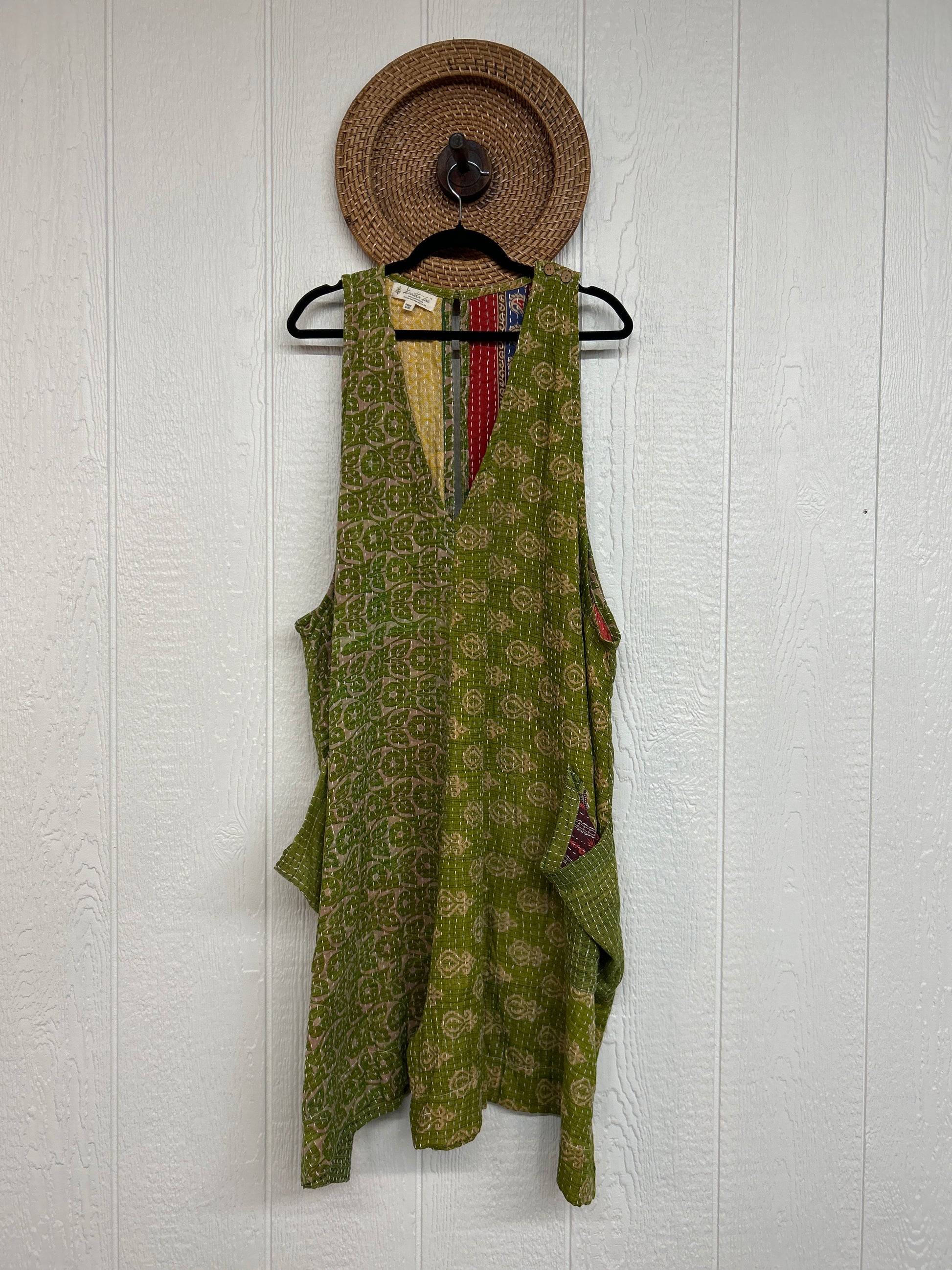 Our jumpsuit is made from our vintage kantha stitched cotton sari.