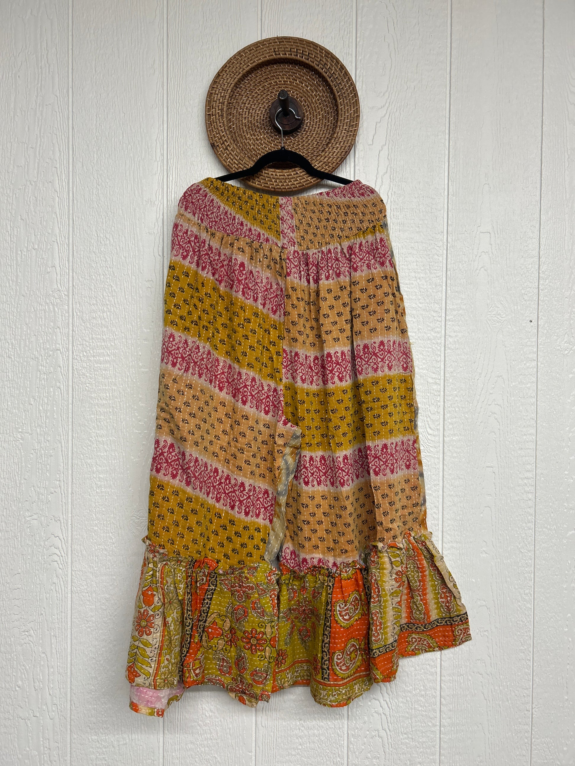 Features interior pockets and super wide legs with a bell ruffle on the hem that make the pants dance when you walk. Made from our ultra luxe kantha stitch cotton sari. Dress these dream pants up or down to become the ultimate vibe.