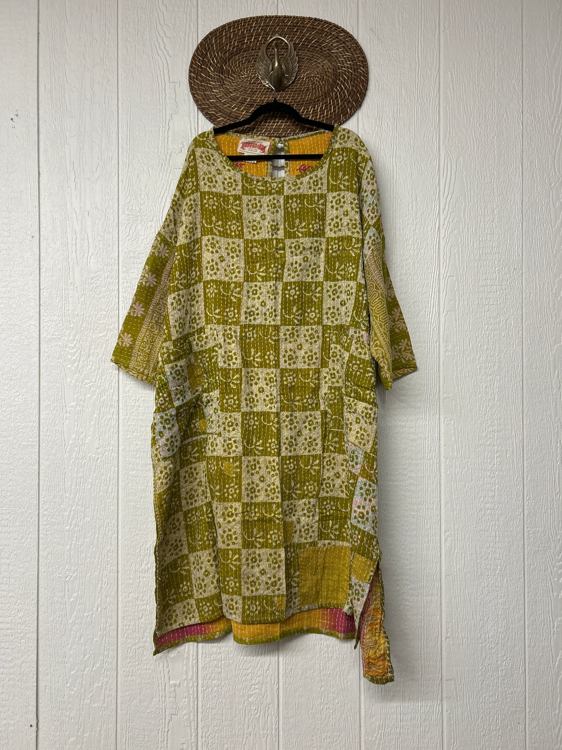 Crafted from our ultra lux vintage cotton kantha stitched sari this tunic is based on our best selling dream line pullover as a maxi!