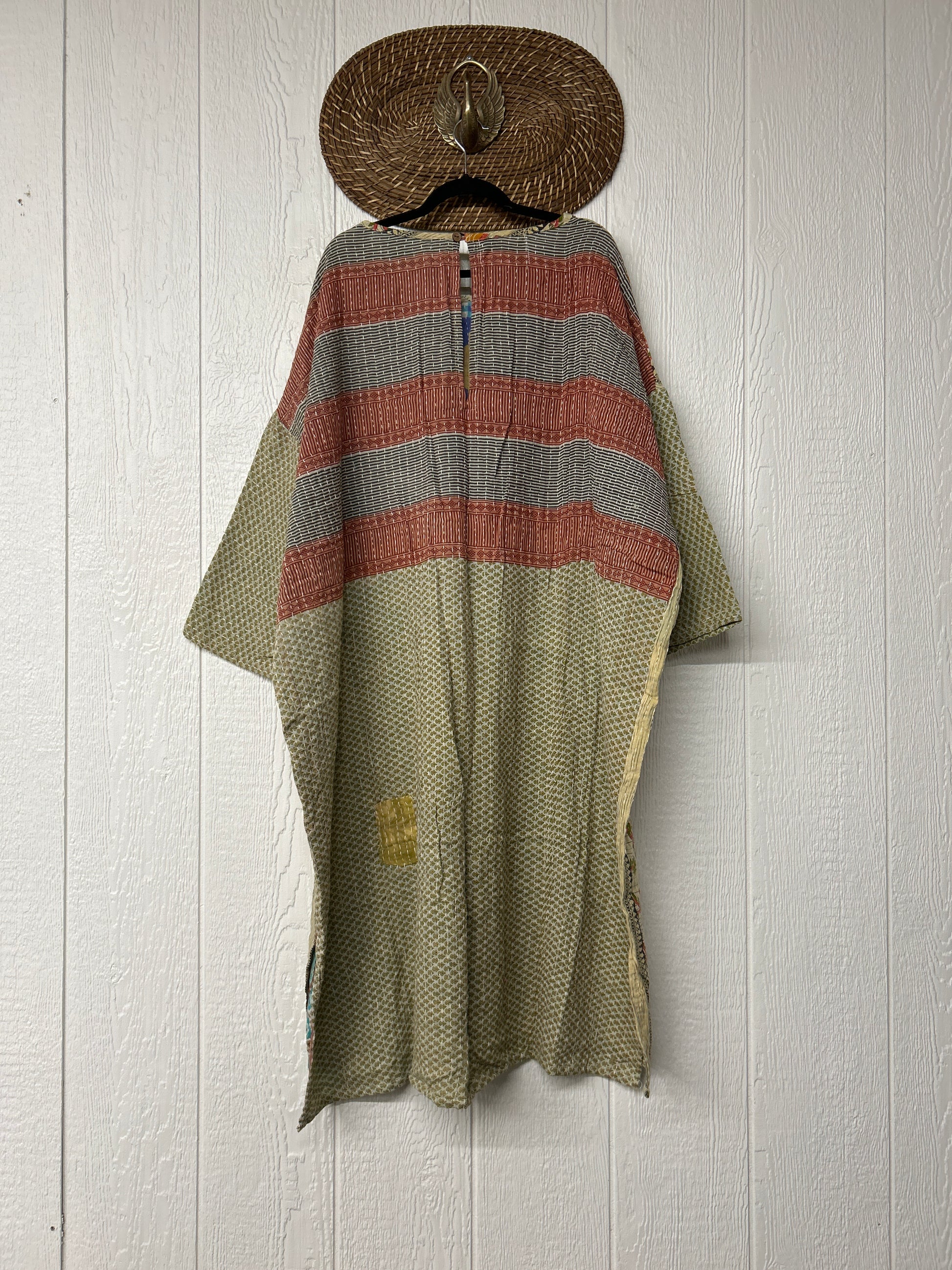 Crafted from our ultra lux vintage cotton kantha stitched sari this tunic is based on our best selling dream line pullover as a maxi!