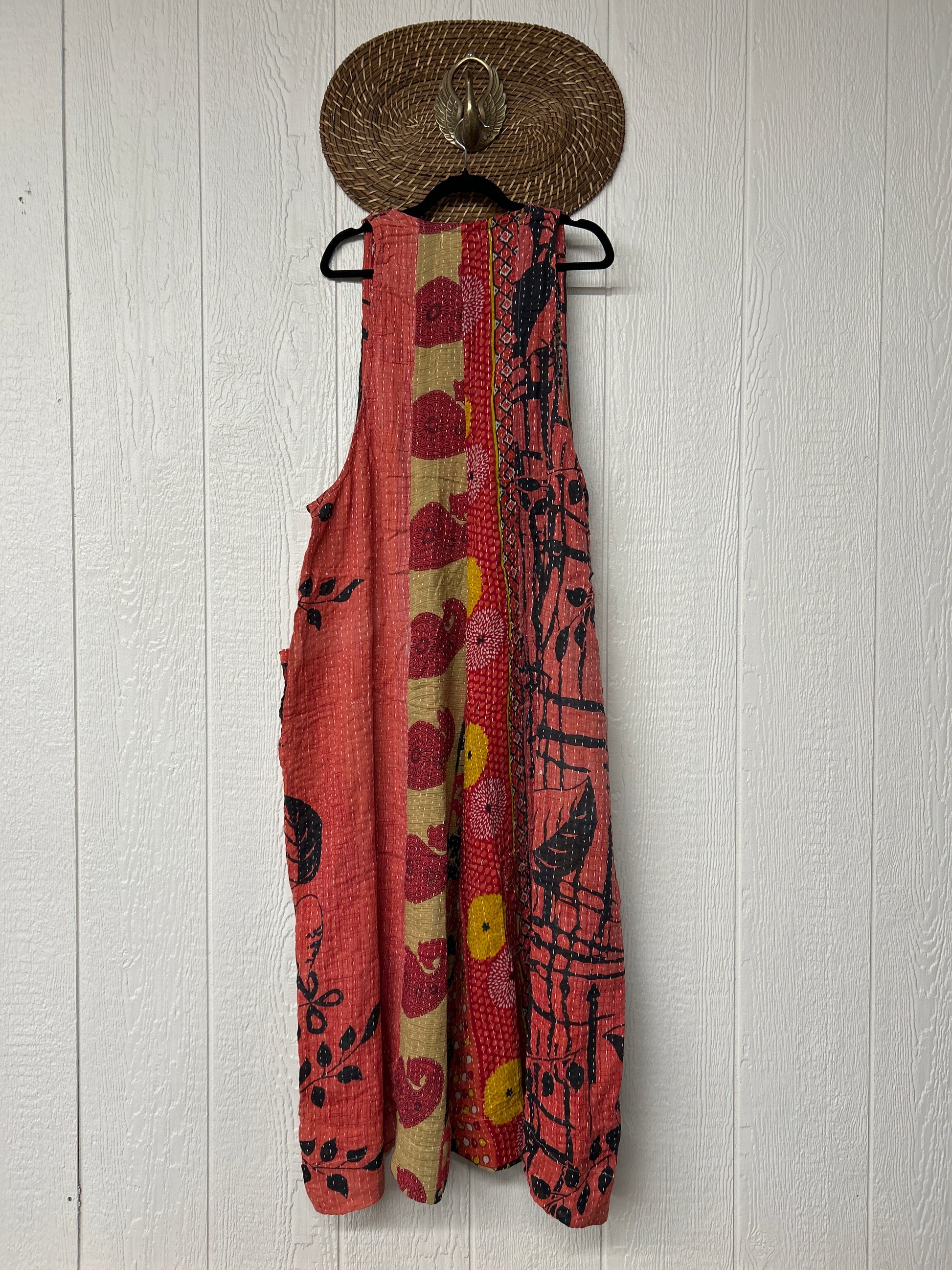 Our jumpsuit is made from our vintage kantha embroidered sari.
