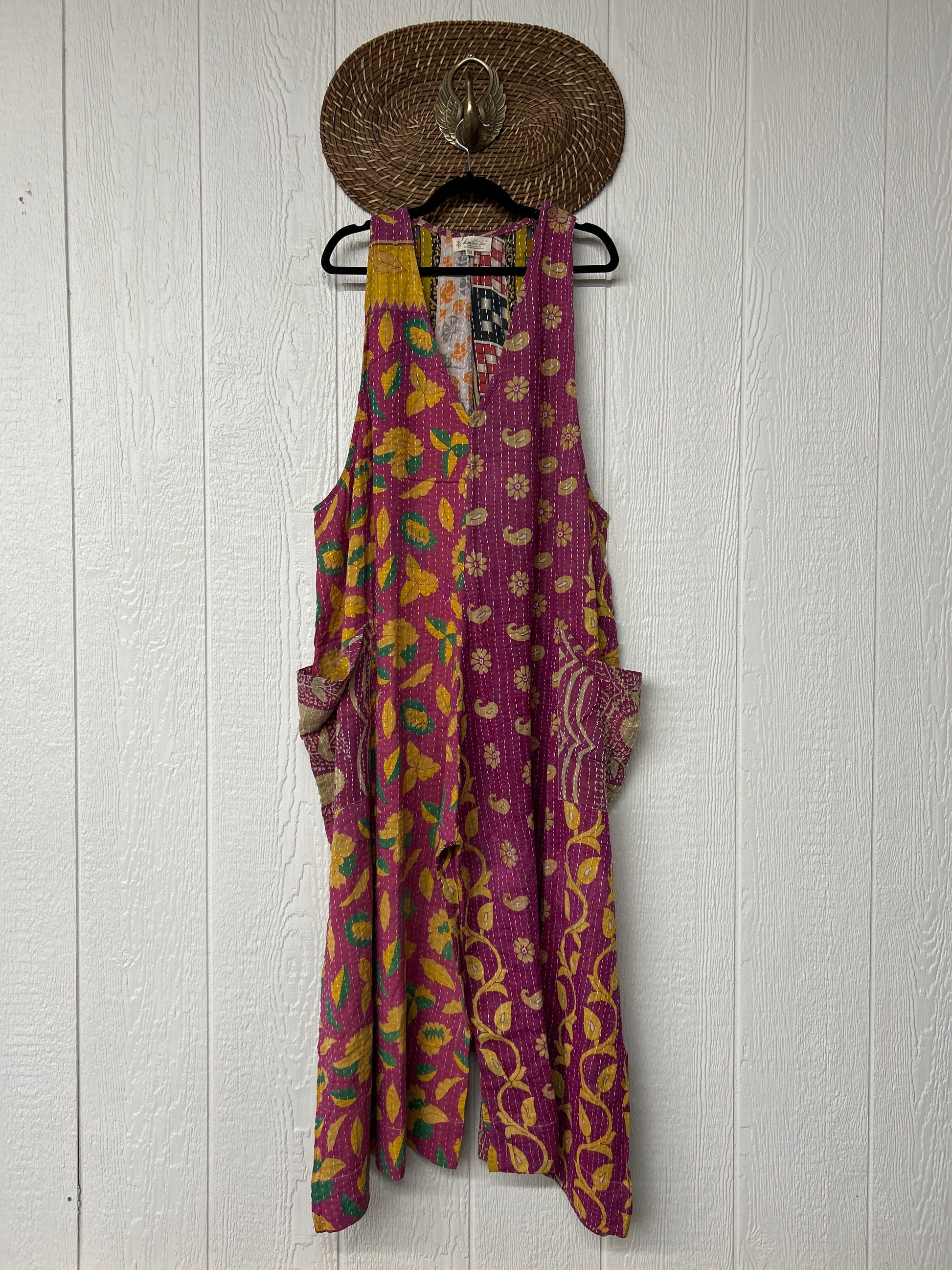 Our jumpsuit is made from our vintage kantha embroidered sari.