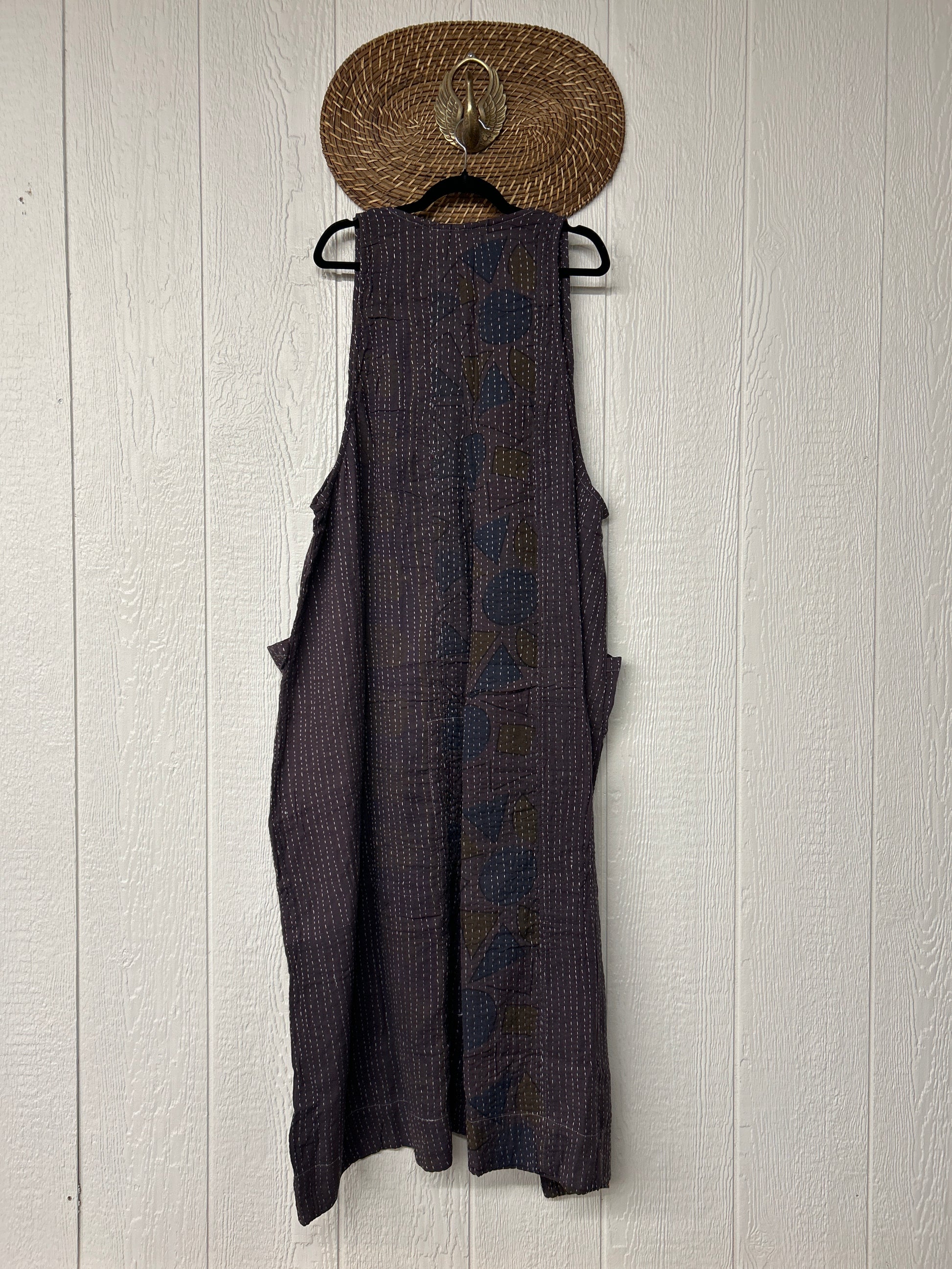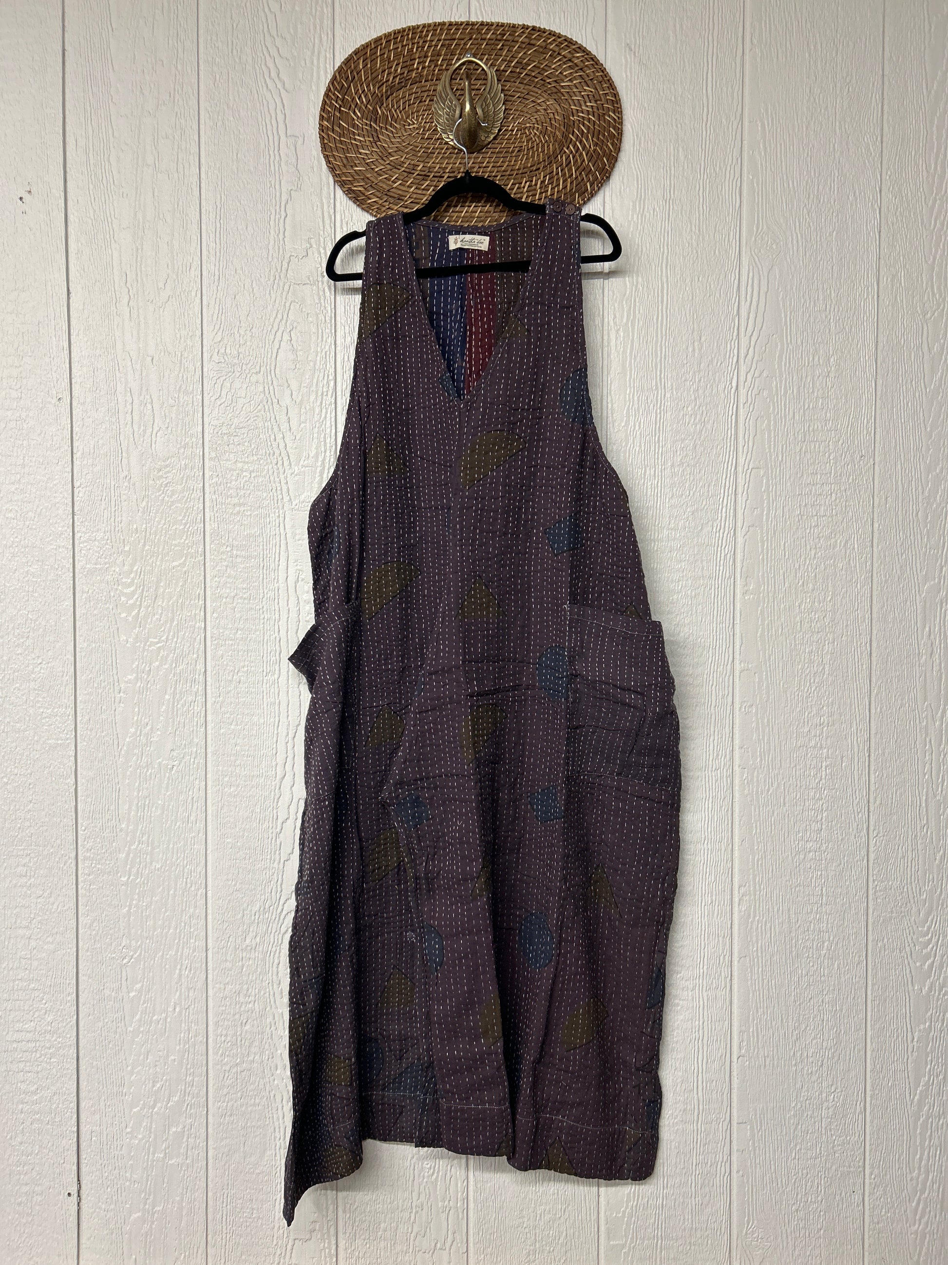 Our jumpsuit is made from our vintage kantha embroidered sari.