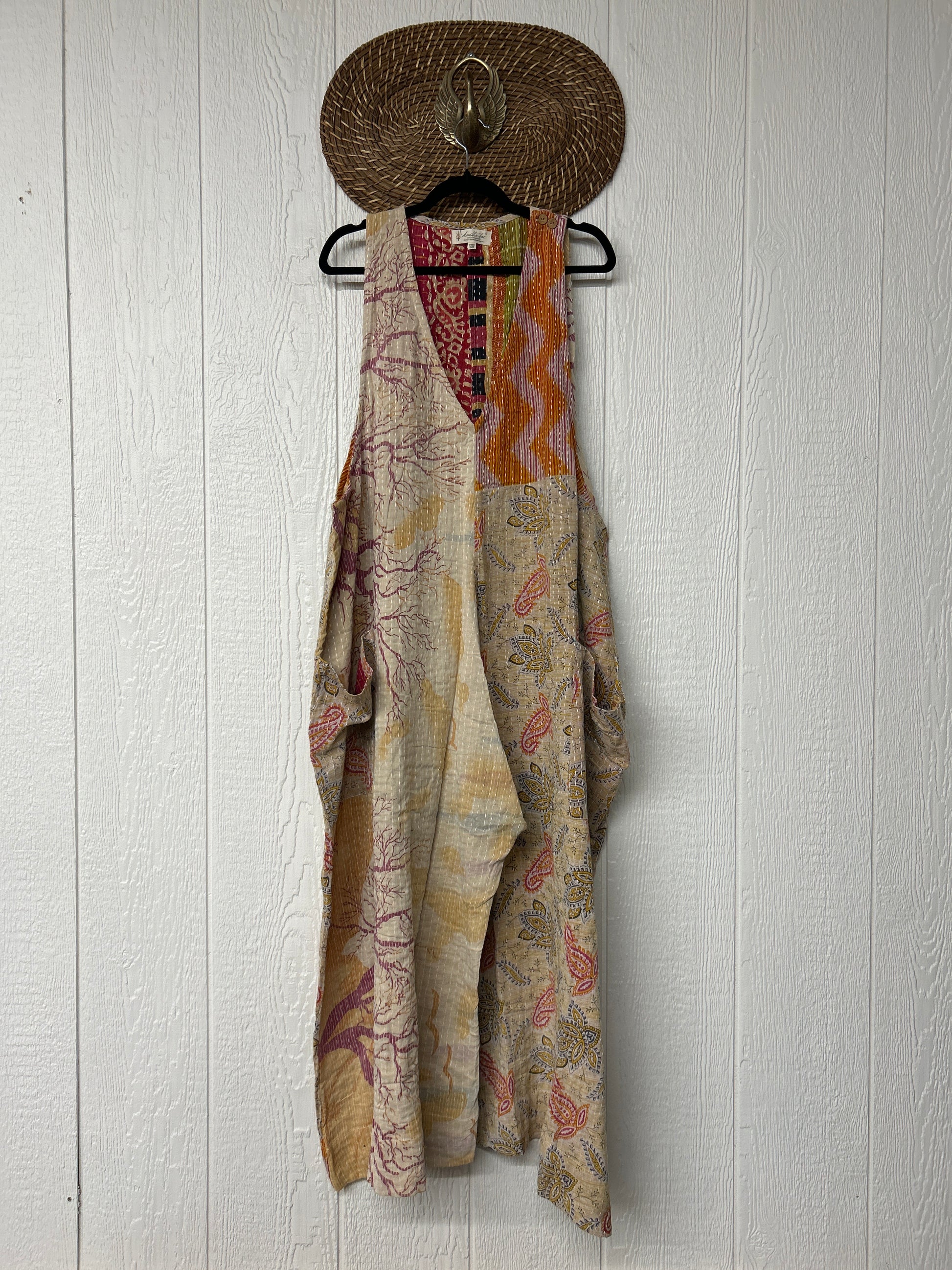 Our jumpsuit is made from our vintage kantha embroidered sari.
