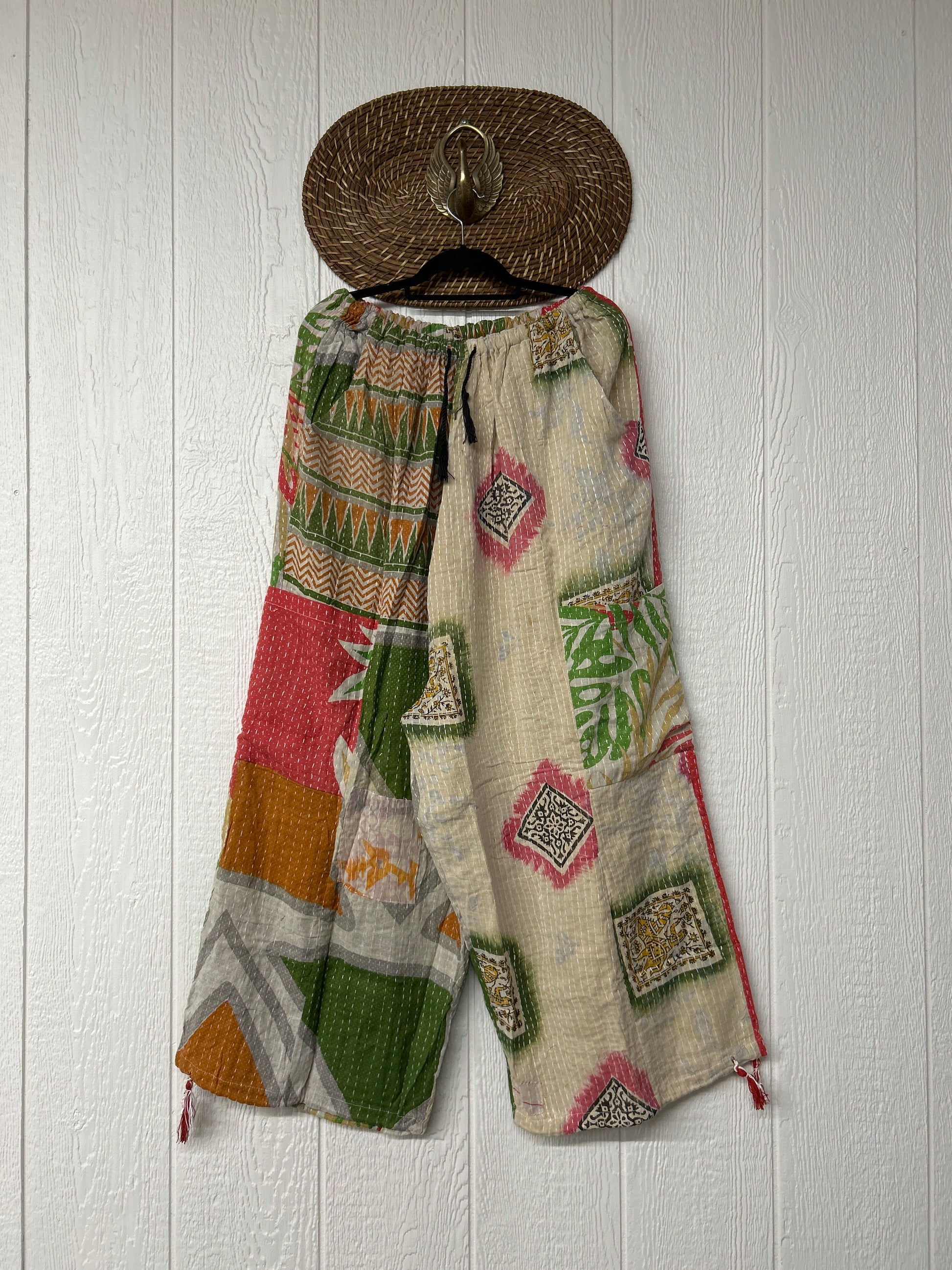 Made from our hand kantha stitched vintage cotton sari, the Karma Cargo Pants features super wide legs with deep side pockets and interior pockets.