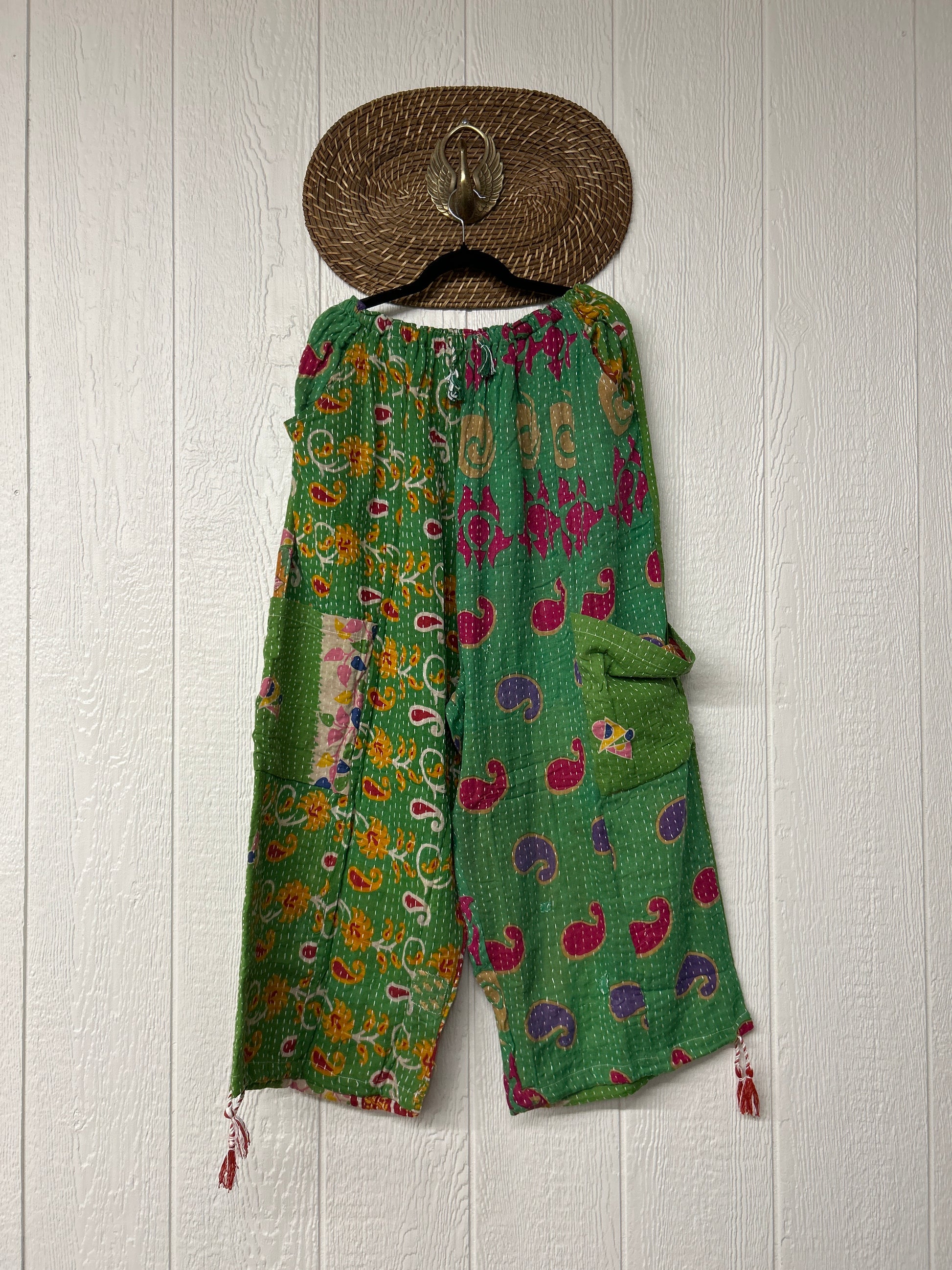 Made from our hand kantha stitched vintage cotton sari, the Karma Cargo Pants features super wide legs with deep side pockets and interior pockets.