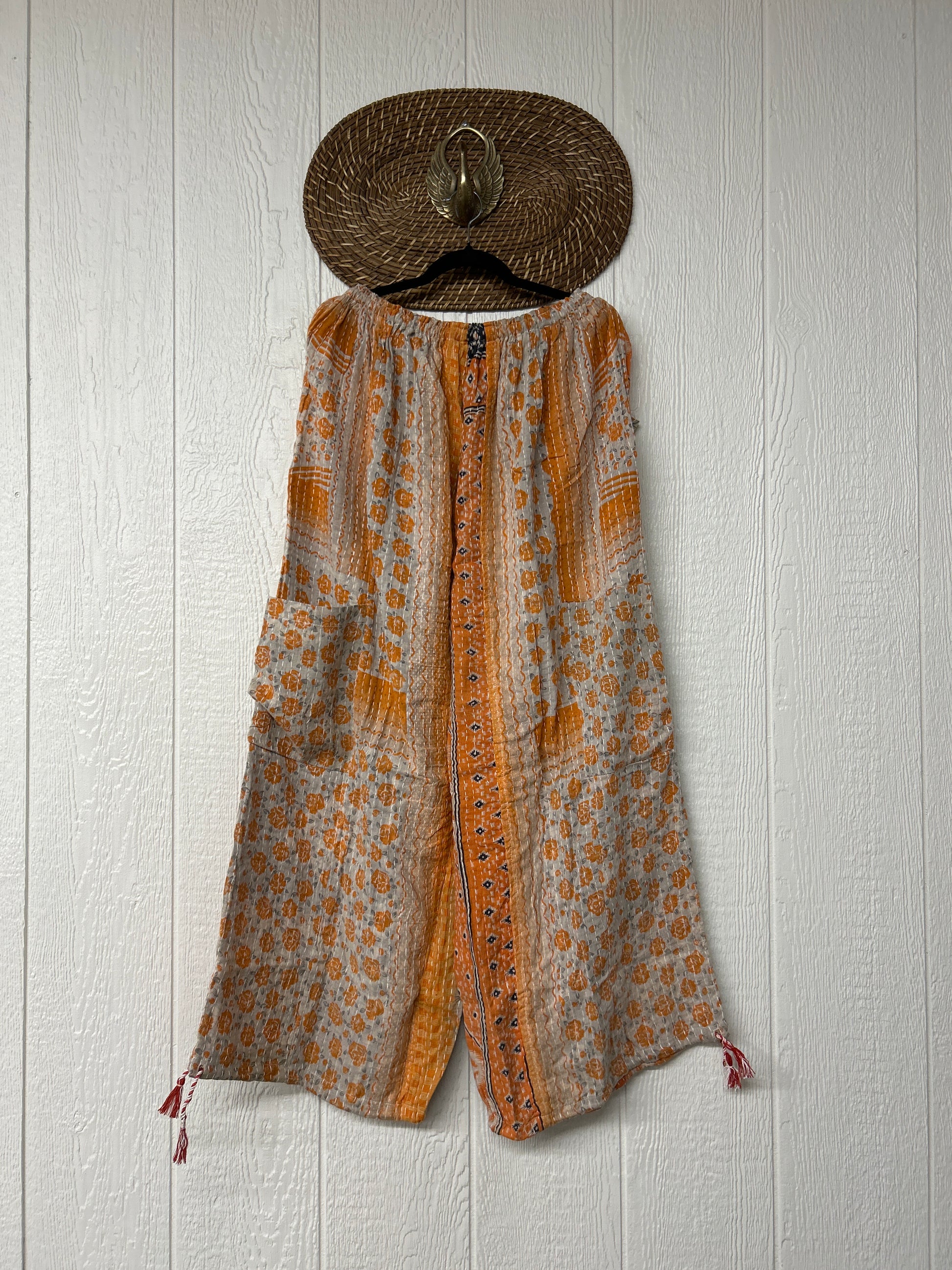 Made from our hand kantha stitched vintage cotton sari, the Karma Cargo Pants features super wide legs with deep side pockets and interior pockets.