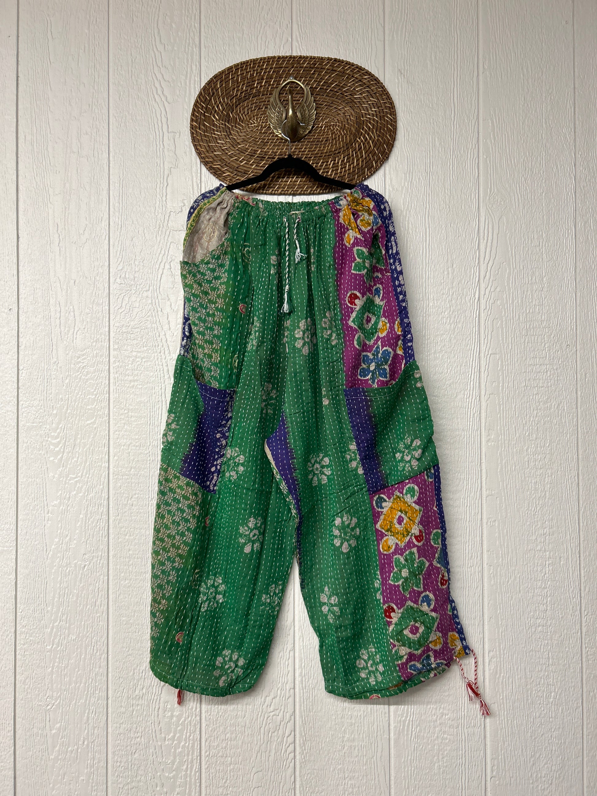 Made from our hand kantha stitched vintage cotton sari, the Karma Cargo Pants features super wide legs with deep side pockets and interior pockets.