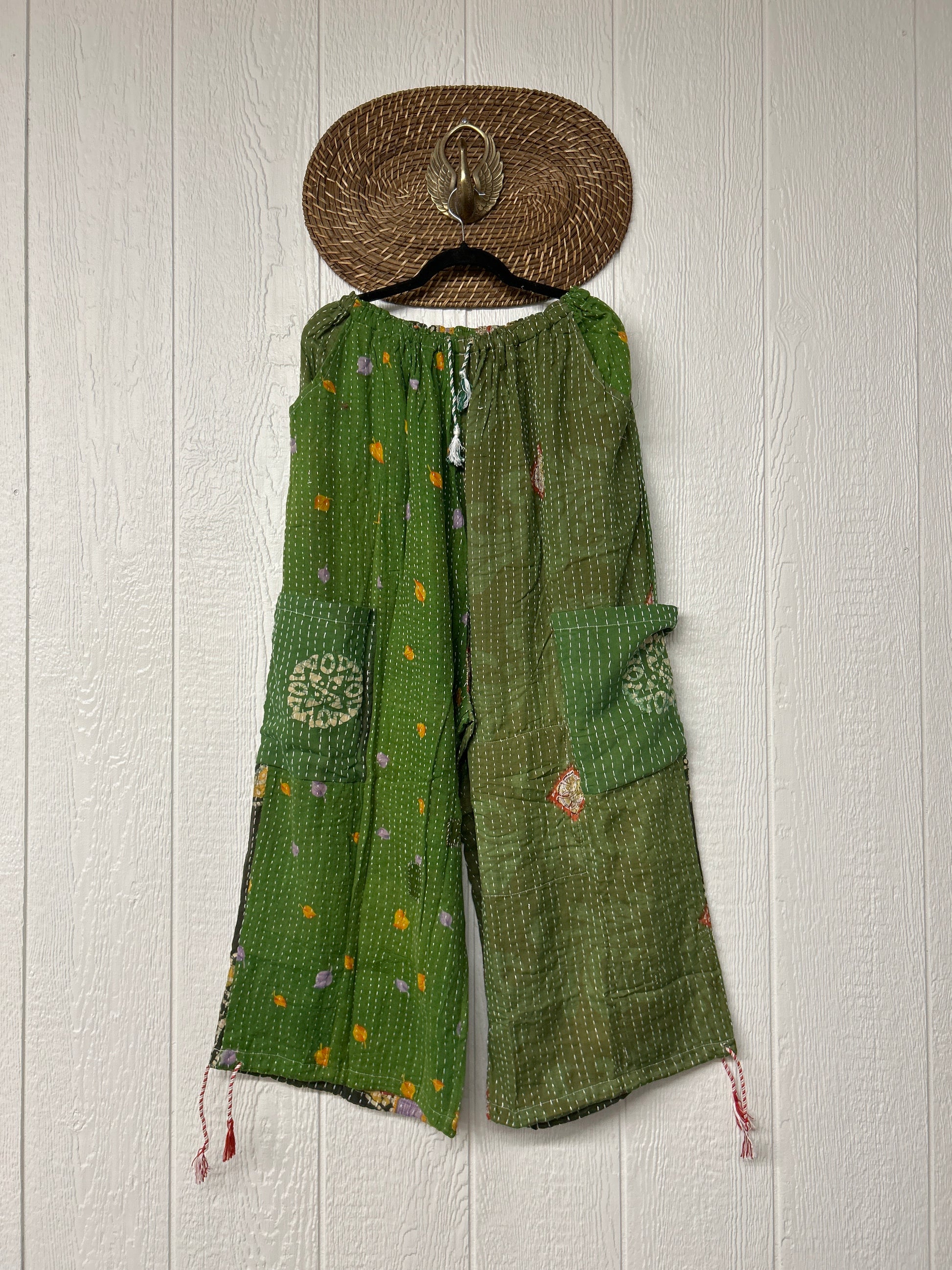 Made from our hand kantha stitched vintage cotton sari, the Karma Cargo Pants features super wide legs with deep side pockets and interior pockets.