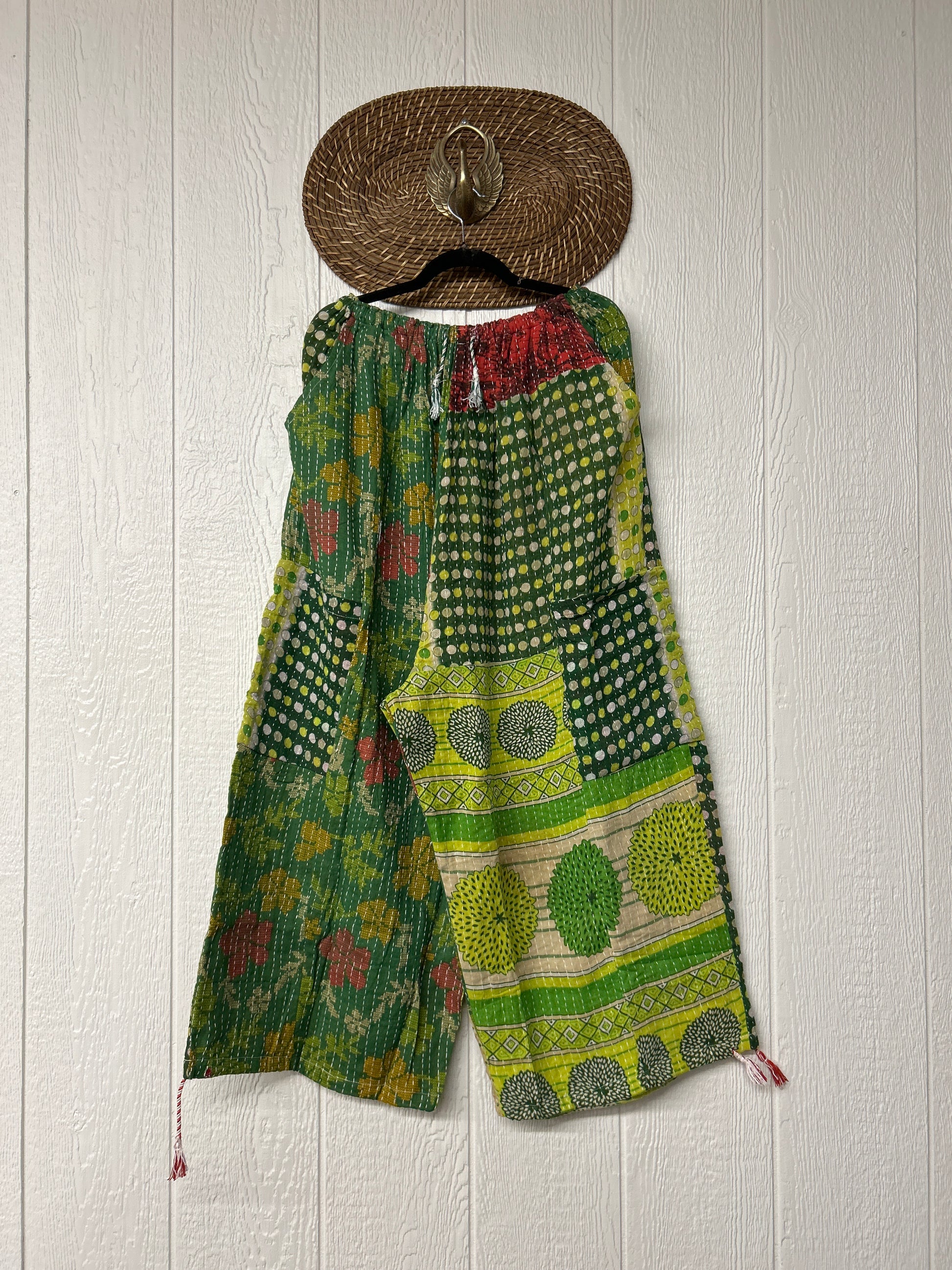 Made from our hand kantha stitched vintage cotton sari, the Karma Cargo Pants features super wide legs with deep side pockets and interior pockets.