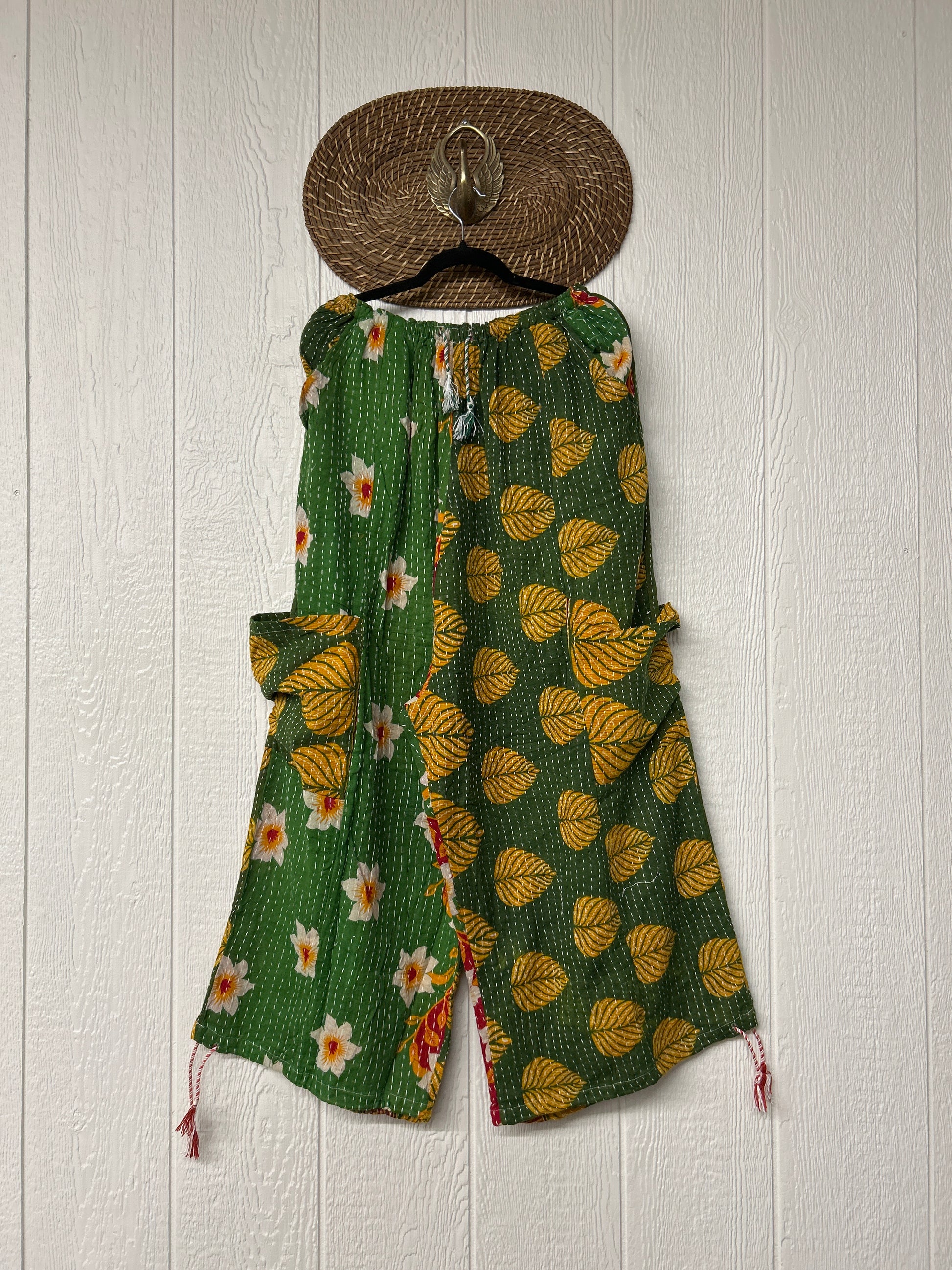 Made from our hand kantha stitched vintage cotton sari, the Karma Cargo Pants features super wide legs with deep side pockets and interior pockets.