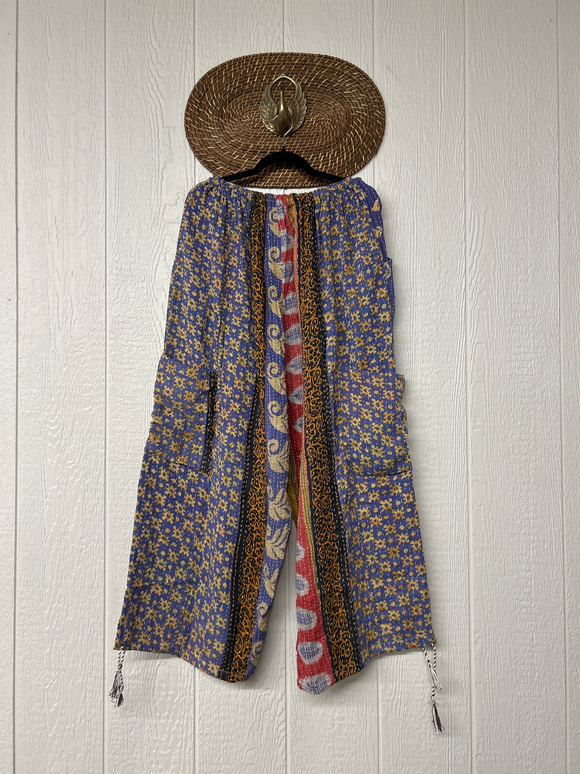Made from our hand kantha stitched vintage cotton sari, the Karma Cargo Pants features super wide legs with deep side pockets and interior pockets.