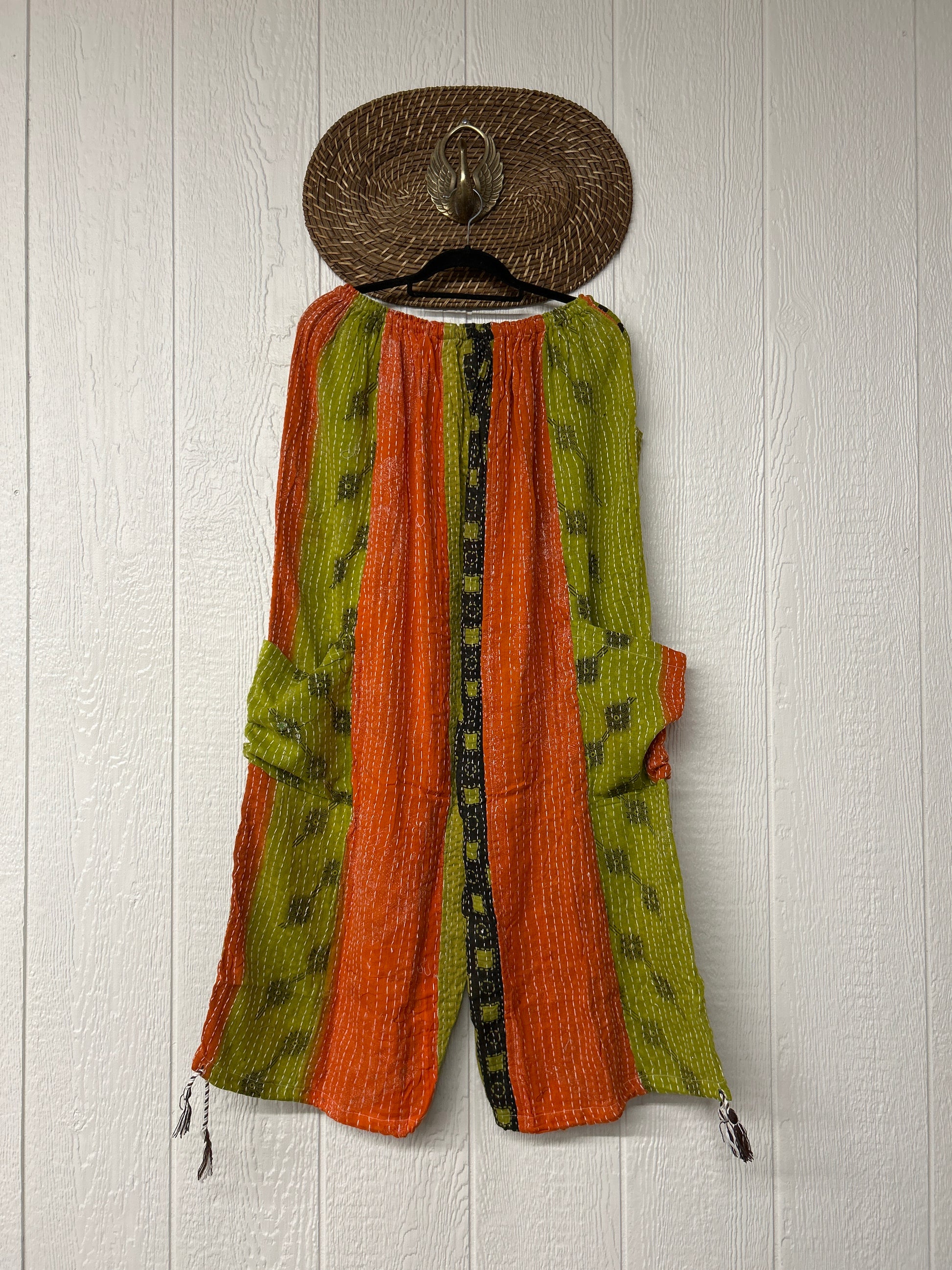 Made from our hand kantha stitched vintage cotton sari, the Karma Cargo Pants features super wide legs with deep side pockets and interior pockets.