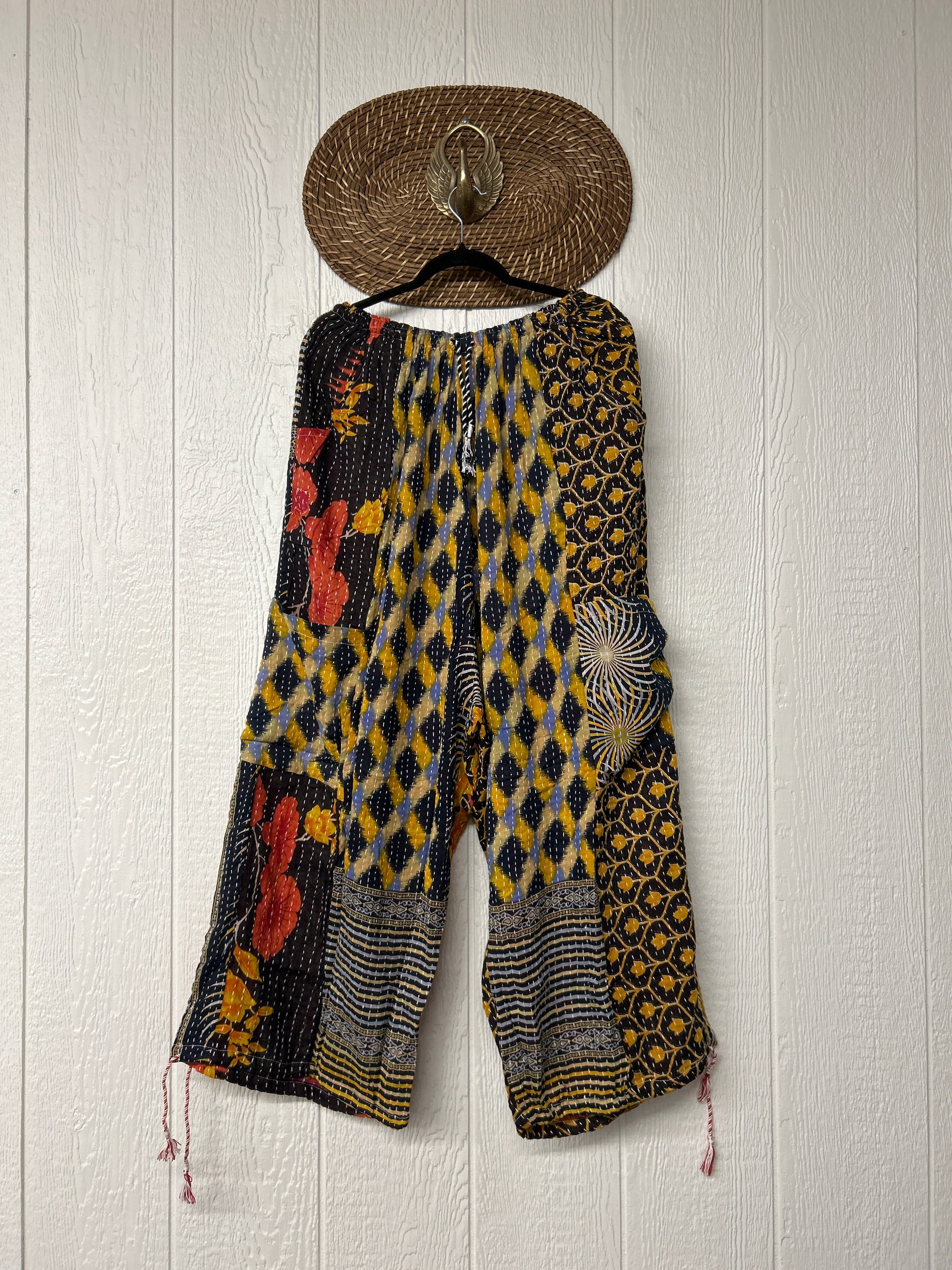 Made from our hand kantha stitched vintage cotton sari, the Karma Cargo Pants features super wide legs with deep side pockets and interior pockets.