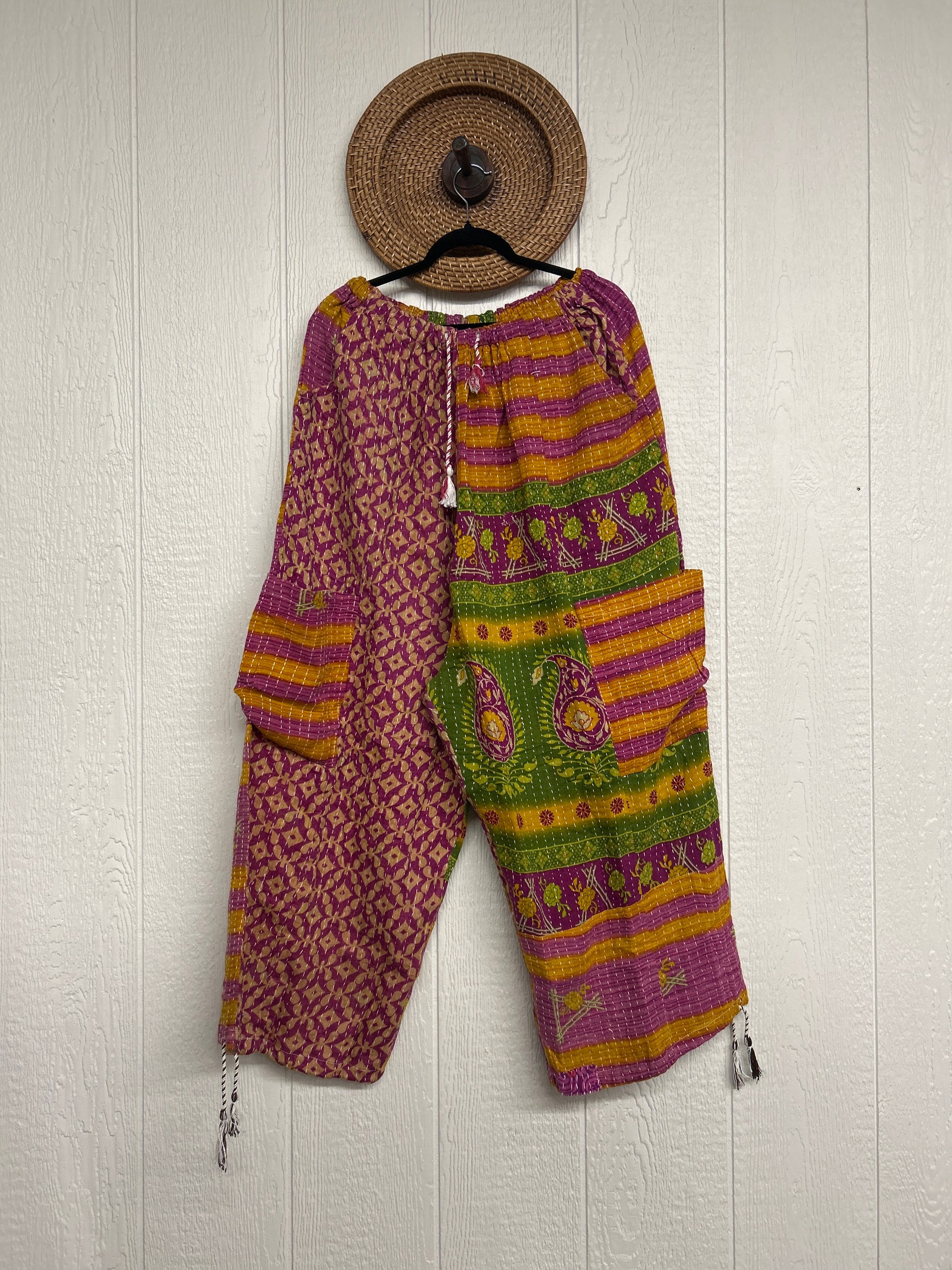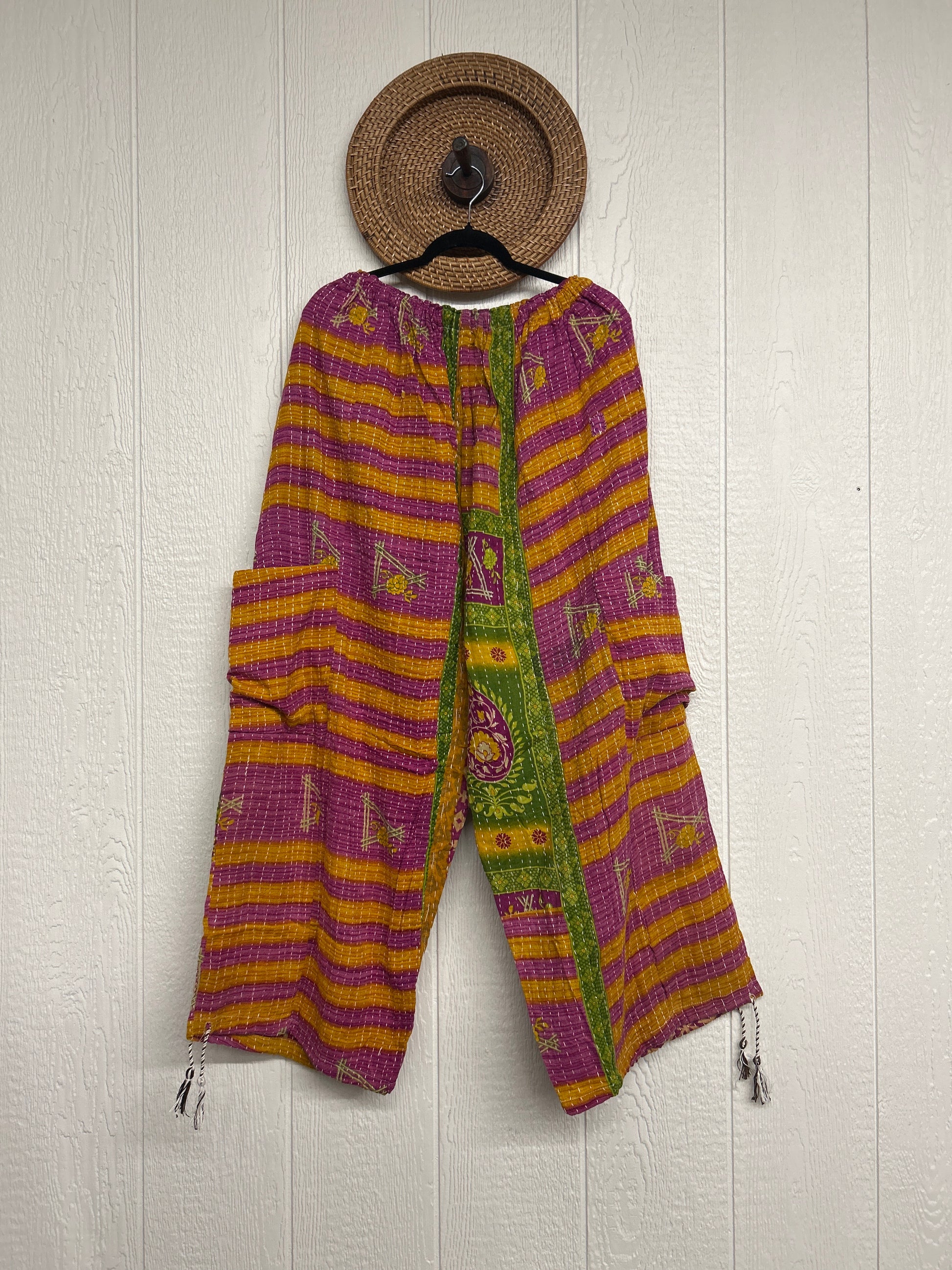 Made from our hand kantha stitched vintage cotton sari, the Karma Cargo Pants features super wide legs with deep side pockets and interior pockets.