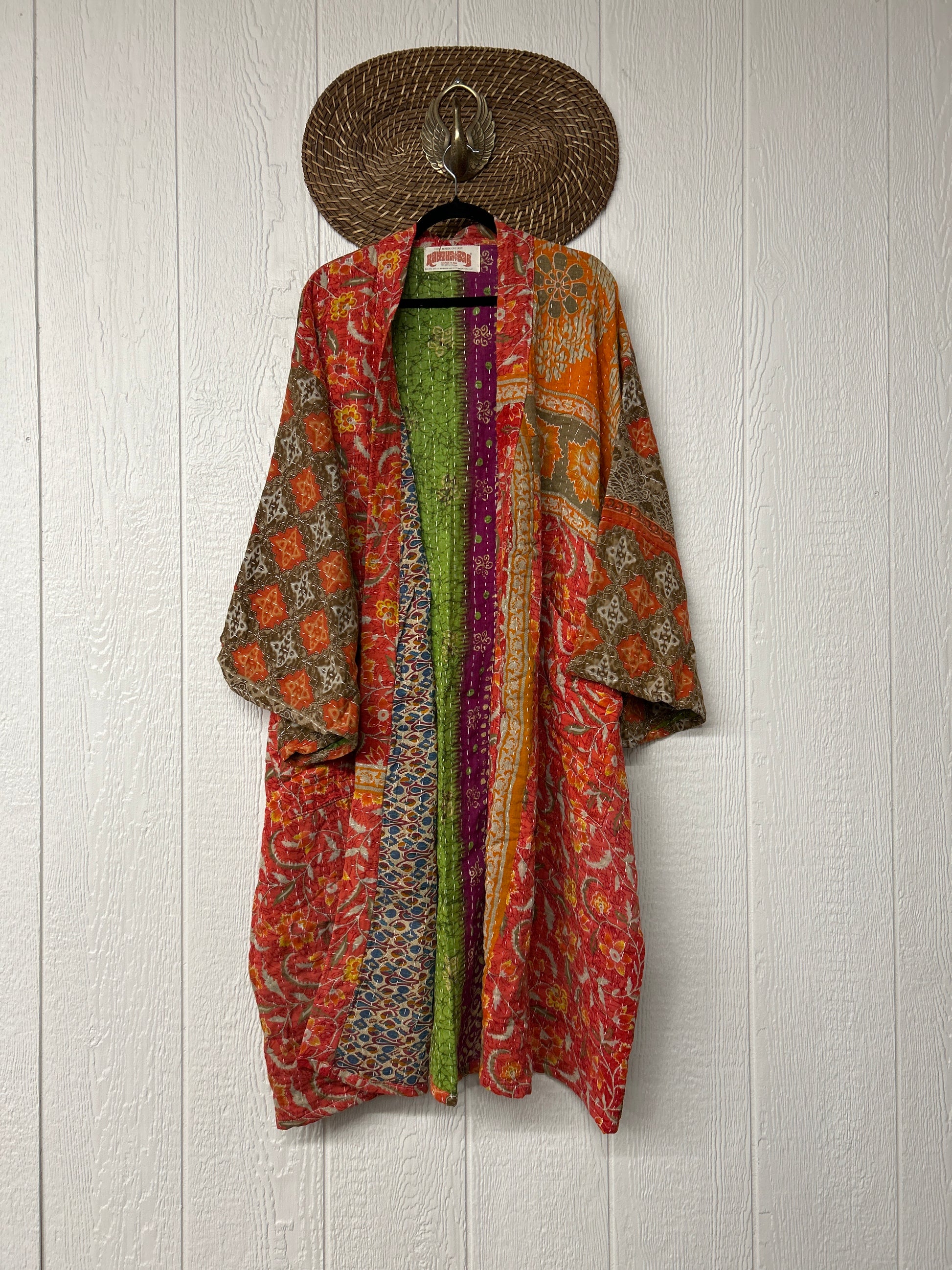 Crafted from our ultra lux vintage Kantha stitched vintage cotton sari our dreamweaver robe features a tie closure, two slouchy exterior pockets for your treasures and groovy bell sleeves. This dream piece can be dressed up or down depending on your vibe!