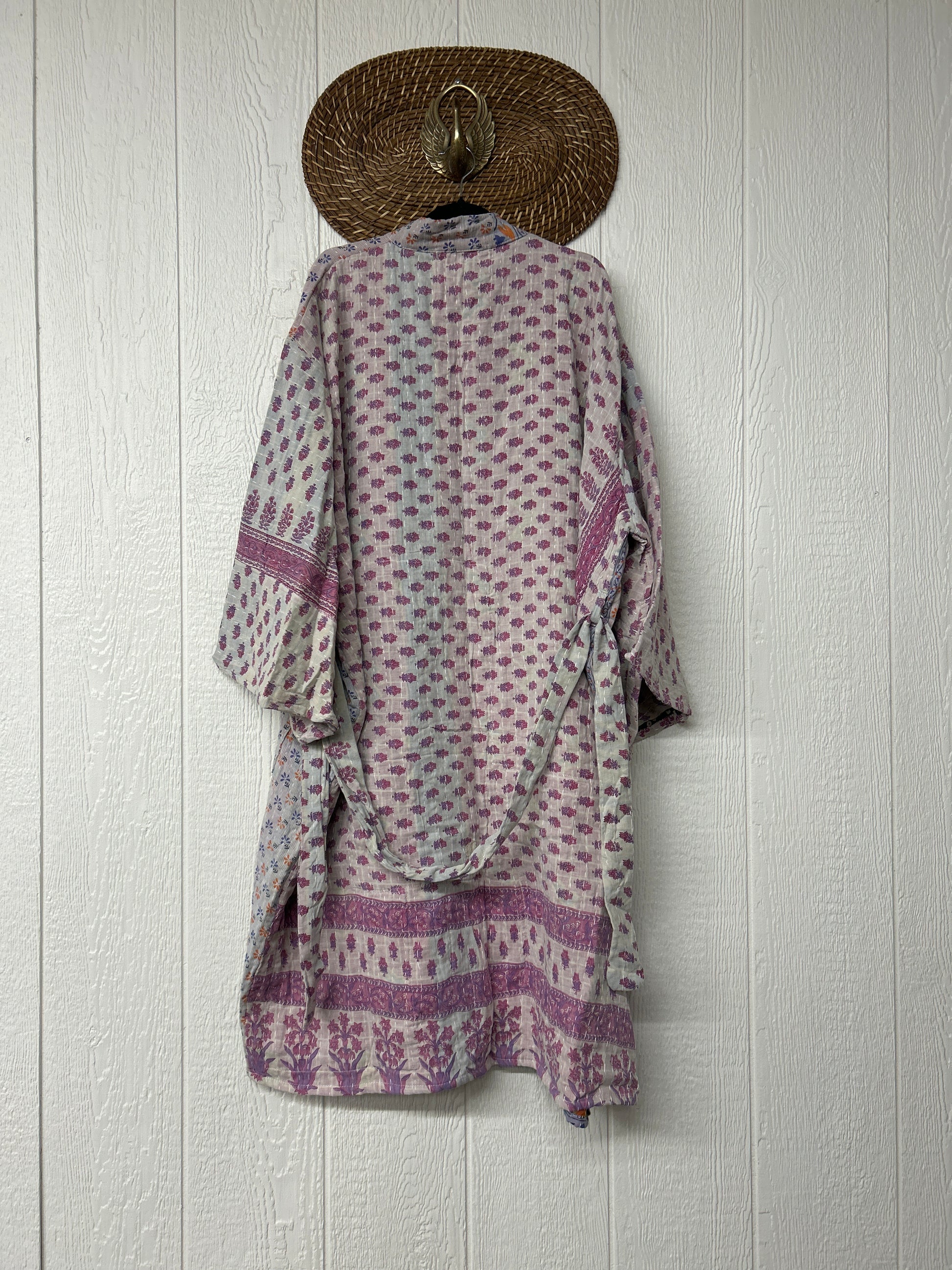 Crafted from our ultra lux vintage Kantha stitched vintage cotton sari our dreamweaver robe features a tie closure, two slouchy exterior pockets for your treasures and groovy bell sleeves. This dream piece can be dressed up or down depending on your vibe!