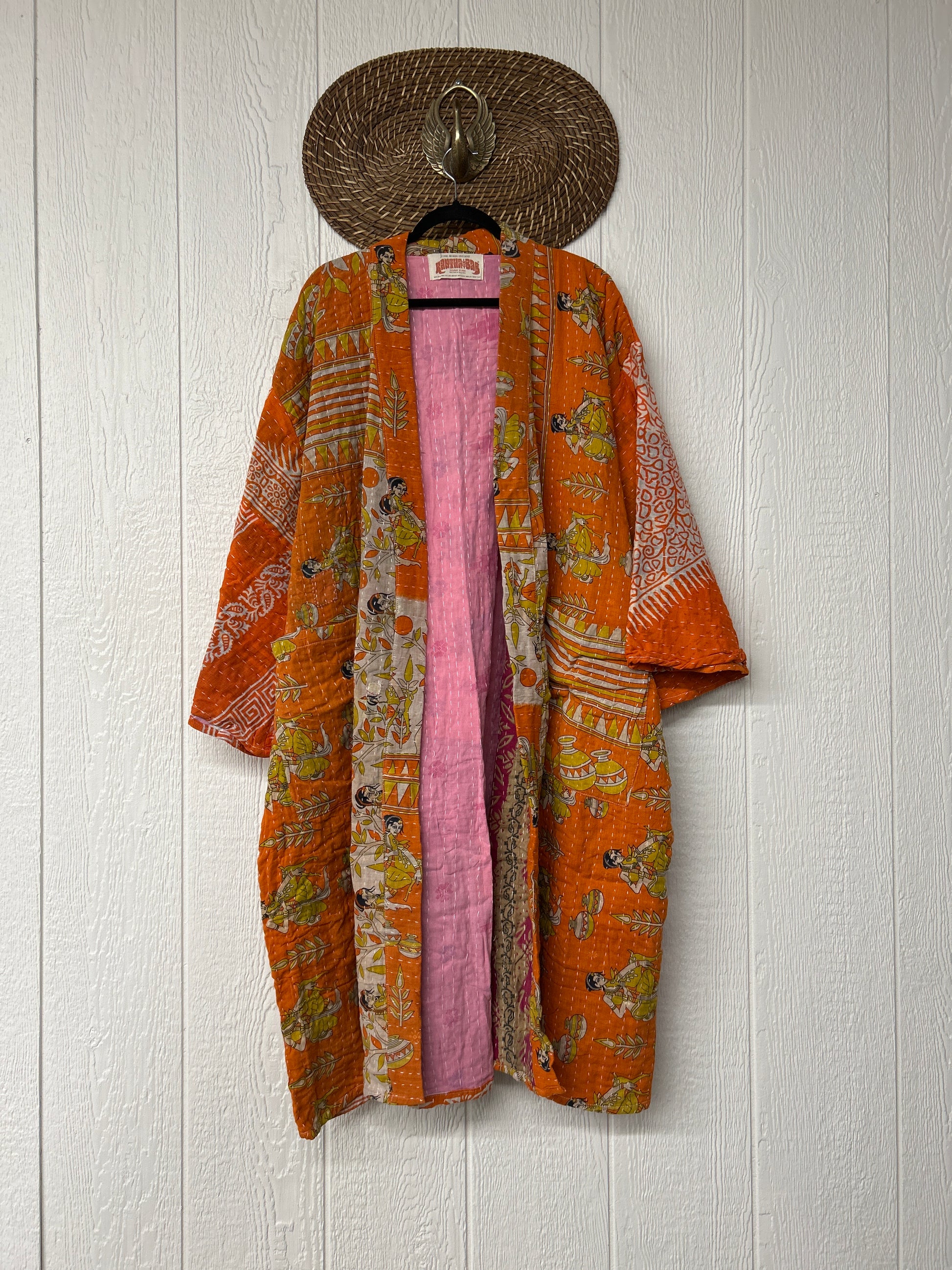Disclosure: Kantha embroidered saris are vintage and have lived a full life before becoming the designs in our shop. Fabrics may have small threads or holes in the layers. The saris are sewn together and extend the life of each design. Color inconsistency or small stains may be present.