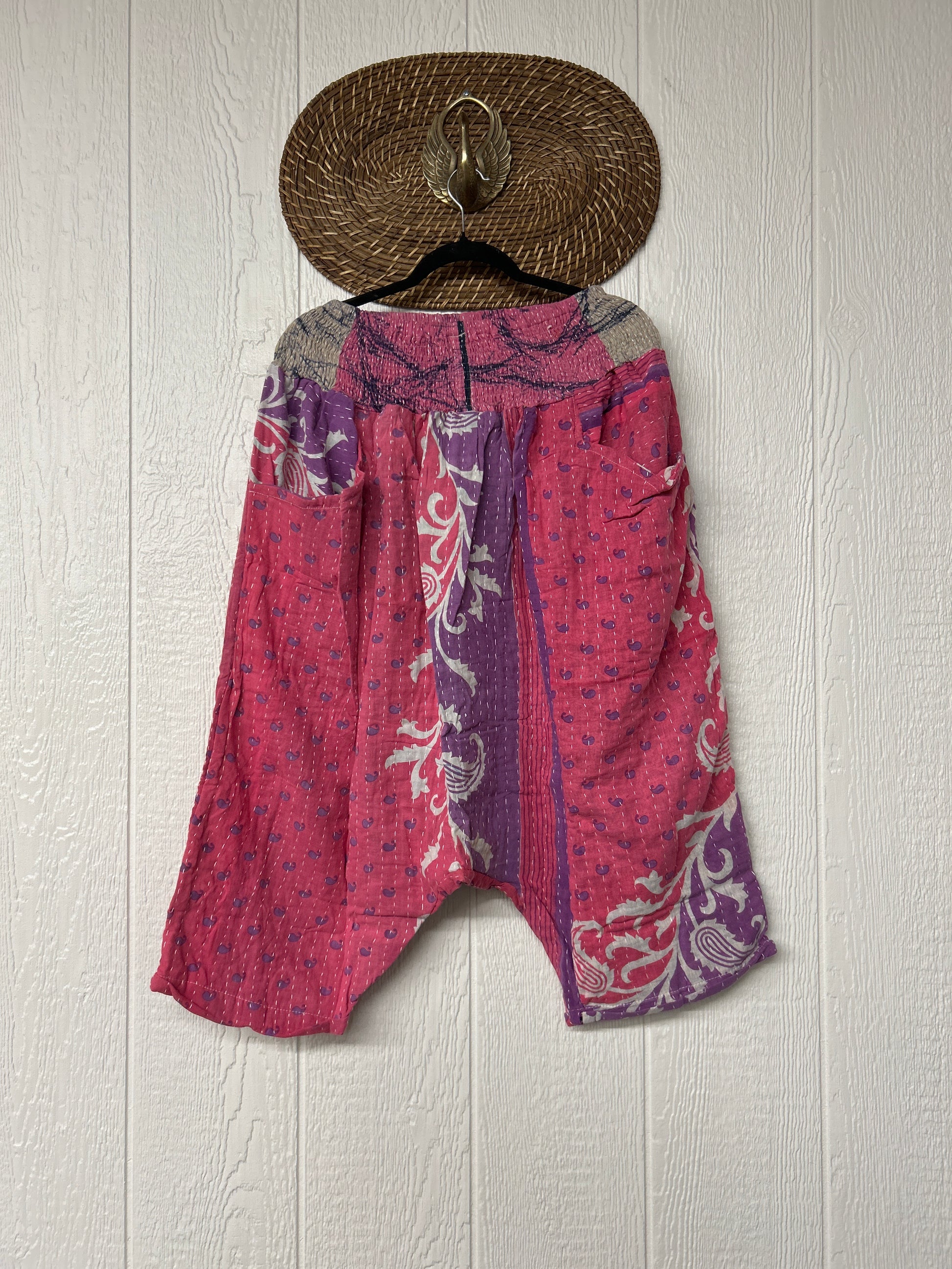 Crafted from our ultra lux embroidered vintage cotton sari coverlet these pants will make you want to dance. Features drop crotch, two front interior pockets, a back pocket and cropped length. These pants can be worn with either set of pockets to the front or back AND they are fully reversible. Yes, you can wear them 4 ways!