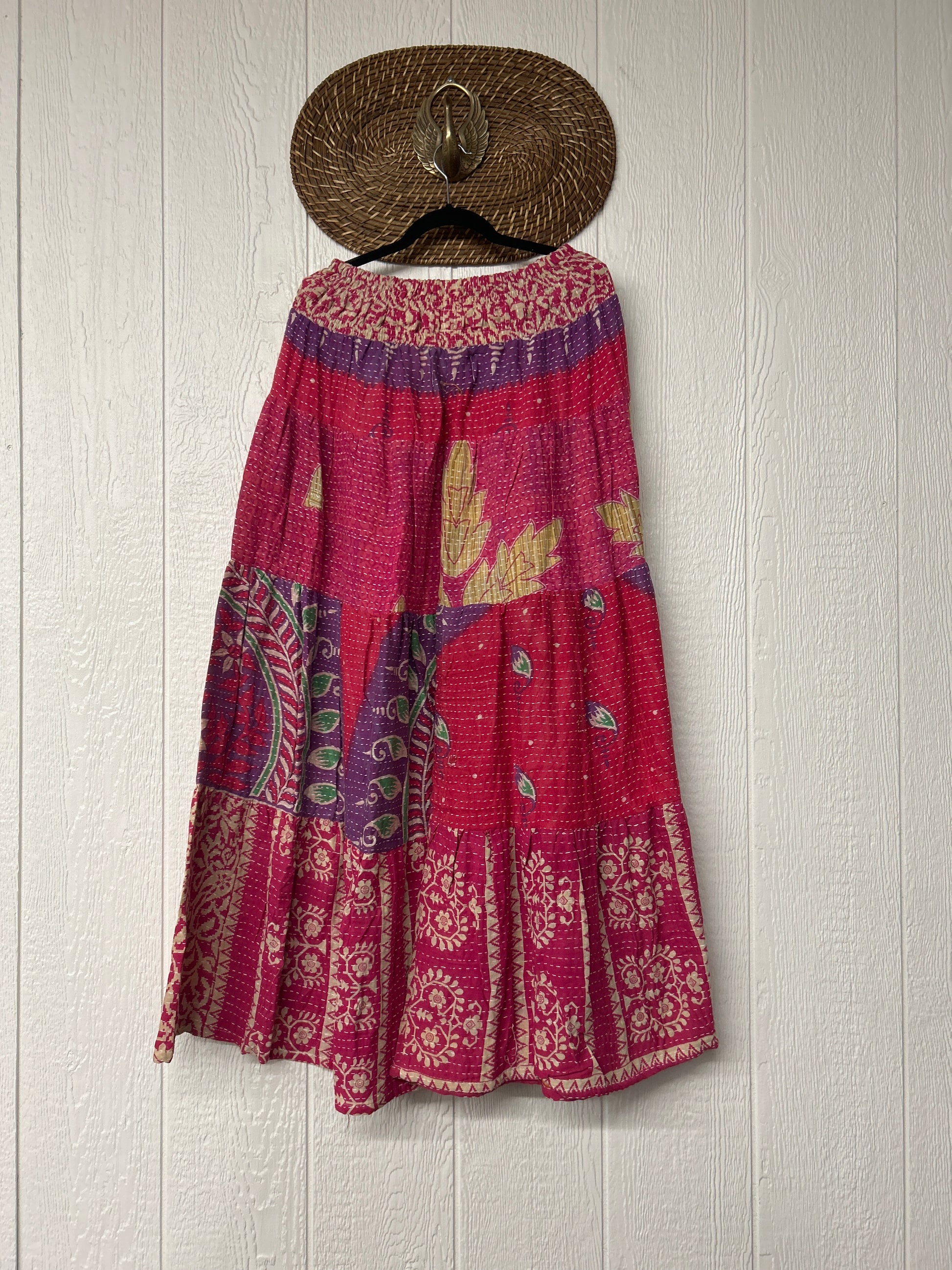 Crafted from our ultra lux Kantha stitched cotton sari, the bold design of the Lotus Wide Leg Pants features tiered wide legs for an exaggerated silhouette and a slouchy interior pocket that is absolute perfection!