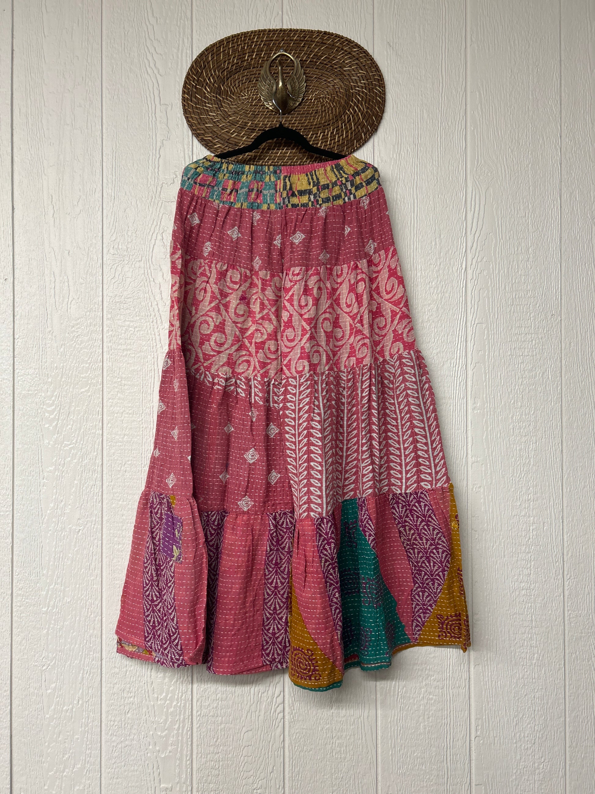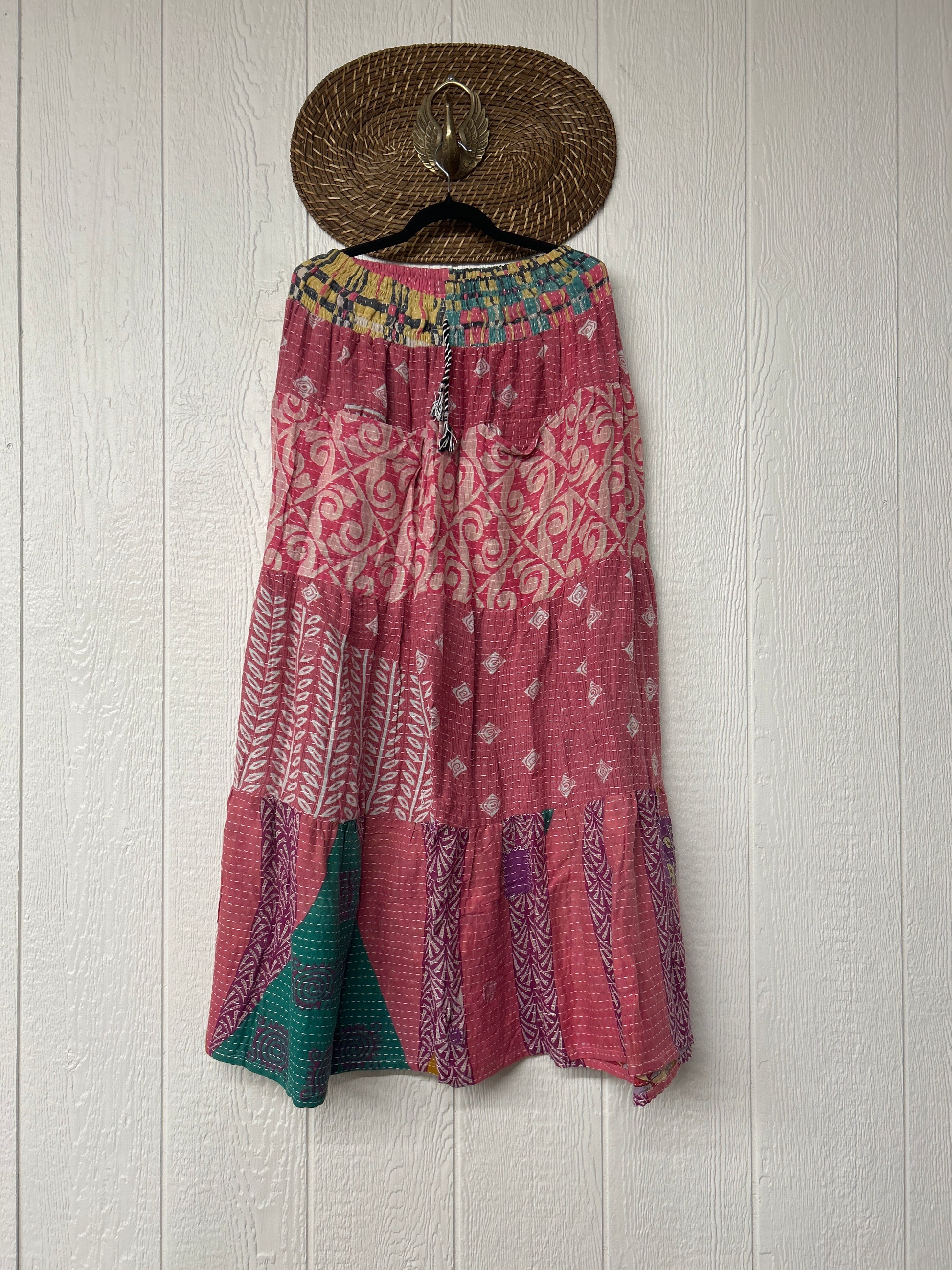 Crafted from our ultra lux Kantha stitched cotton sari, the bold design of the Lotus Wide Leg Pants features tiered wide legs for an exaggerated silhouette and a slouchy interior pocket that is absolute perfection!
