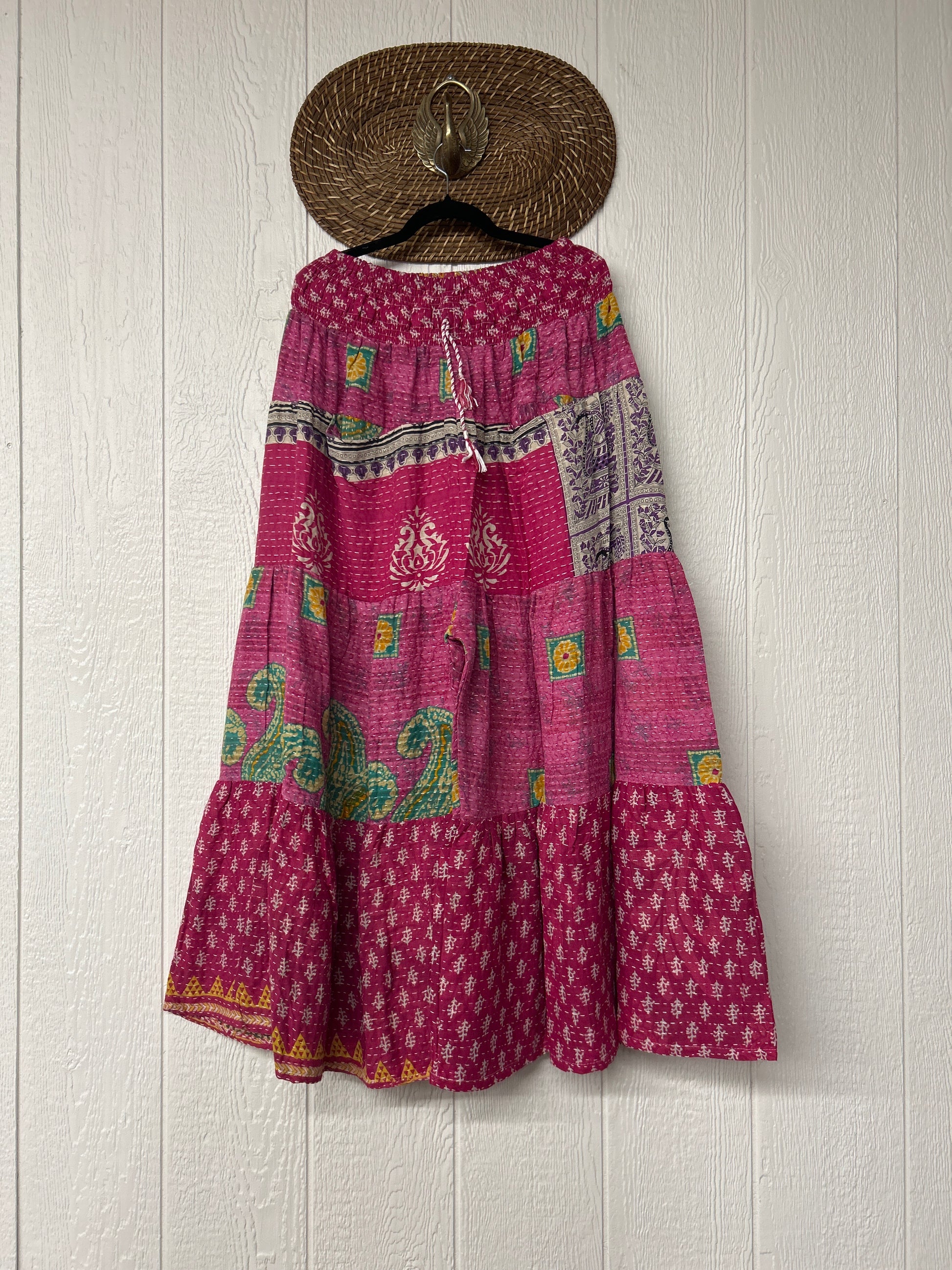 Crafted from our ultra lux Kantha stitched cotton sari, the bold design of the Lotus Wide Leg Pants features tiered wide legs for an exaggerated silhouette and a slouchy interior pocket that is absolute perfection!