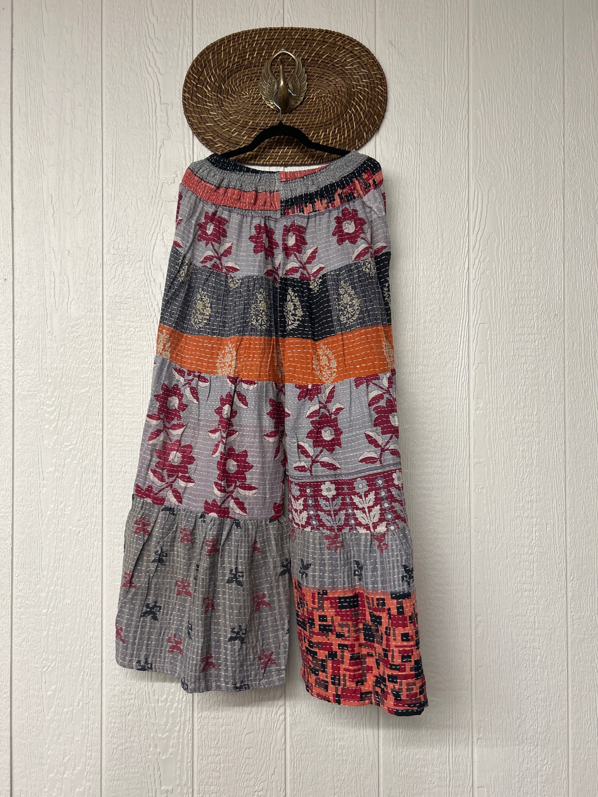 Crafted from our ultra lux Kantha stitched cotton sari, the bold design of the Lotus Wide Leg Pants features tiered wide legs for an exaggerated silhouette and a slouchy interior pocket that is absolute perfection!