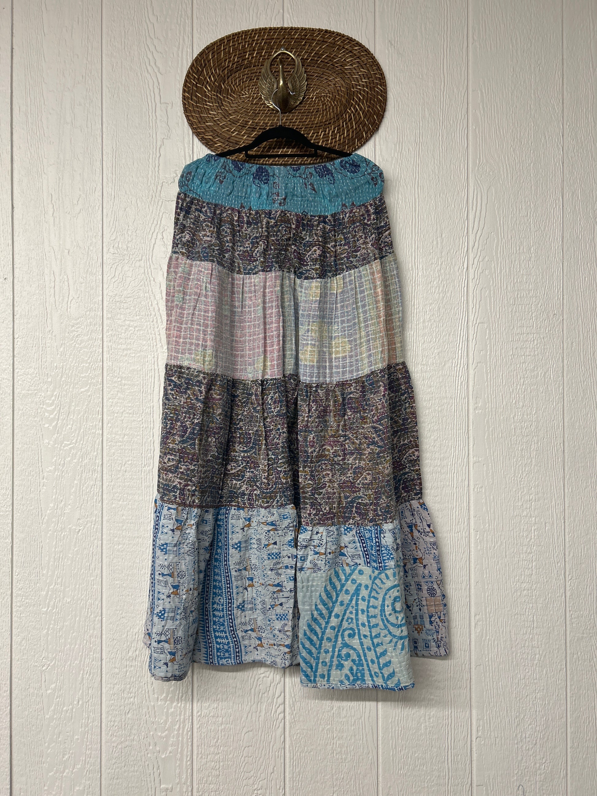 Crafted from our ultra lux Kantha stitched cotton sari, the bold design of the Lotus Wide Leg Pants features tiered wide legs for an exaggerated silhouette and a slouchy interior pocket that is absolute perfection!