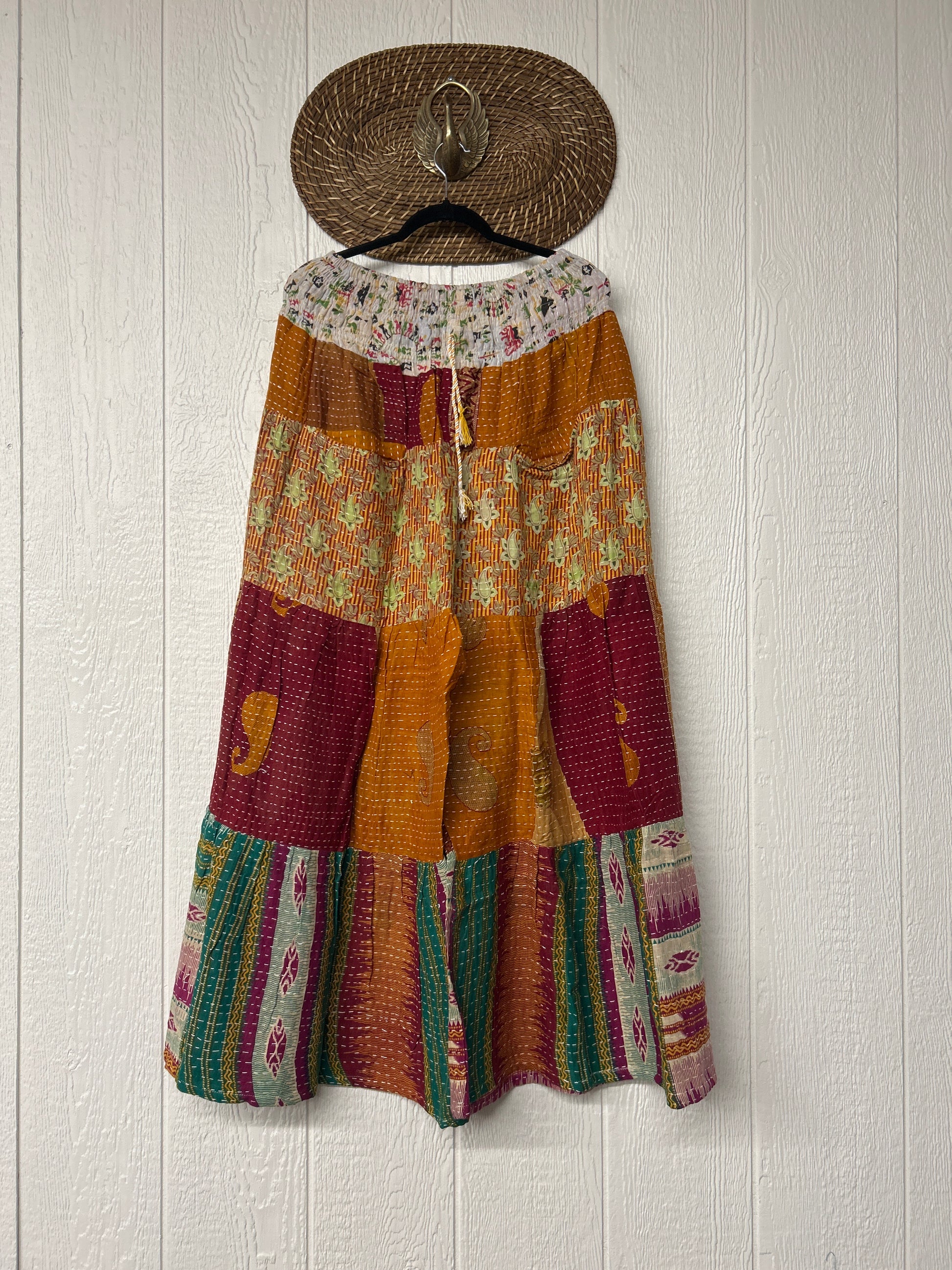 Crafted from our ultra lux Kantha stitched cotton sari, the bold design of the Lotus Wide Leg Pants features tiered wide legs for an exaggerated silhouette and a slouchy interior pocket that is absolute perfection!