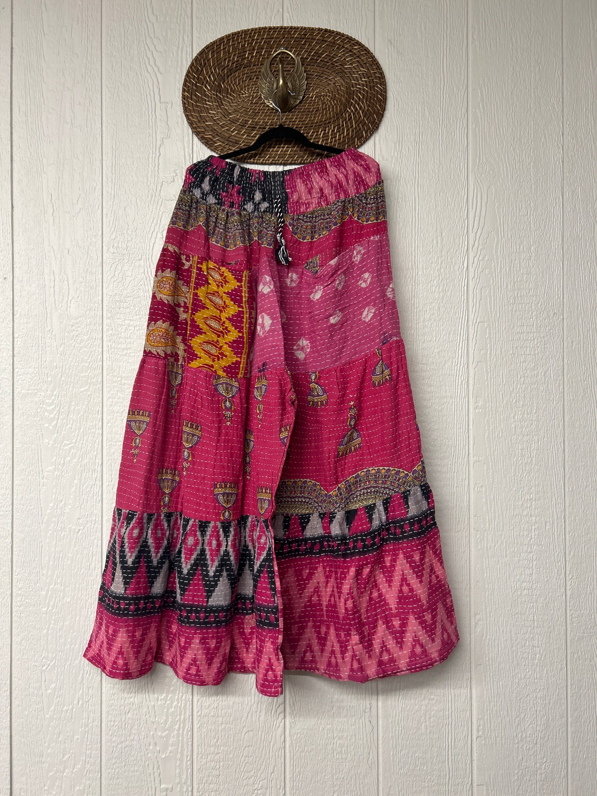 Crafted from our ultra lux Kantha stitched cotton sari, the bold design of the Lotus Wide Leg Pants features tiered wide legs for an exaggerated silhouette and a slouchy interior pocket that is absolute perfection!
