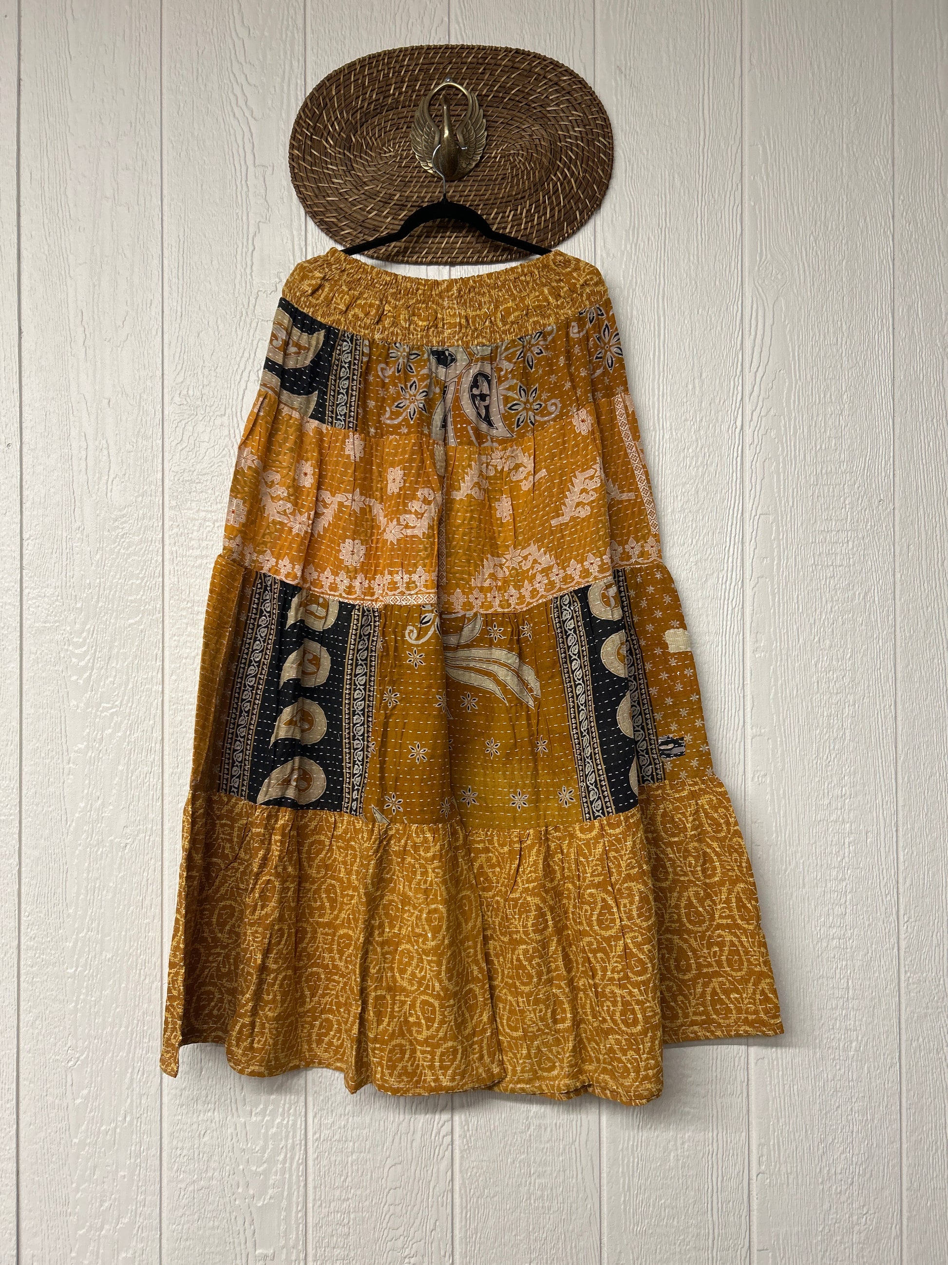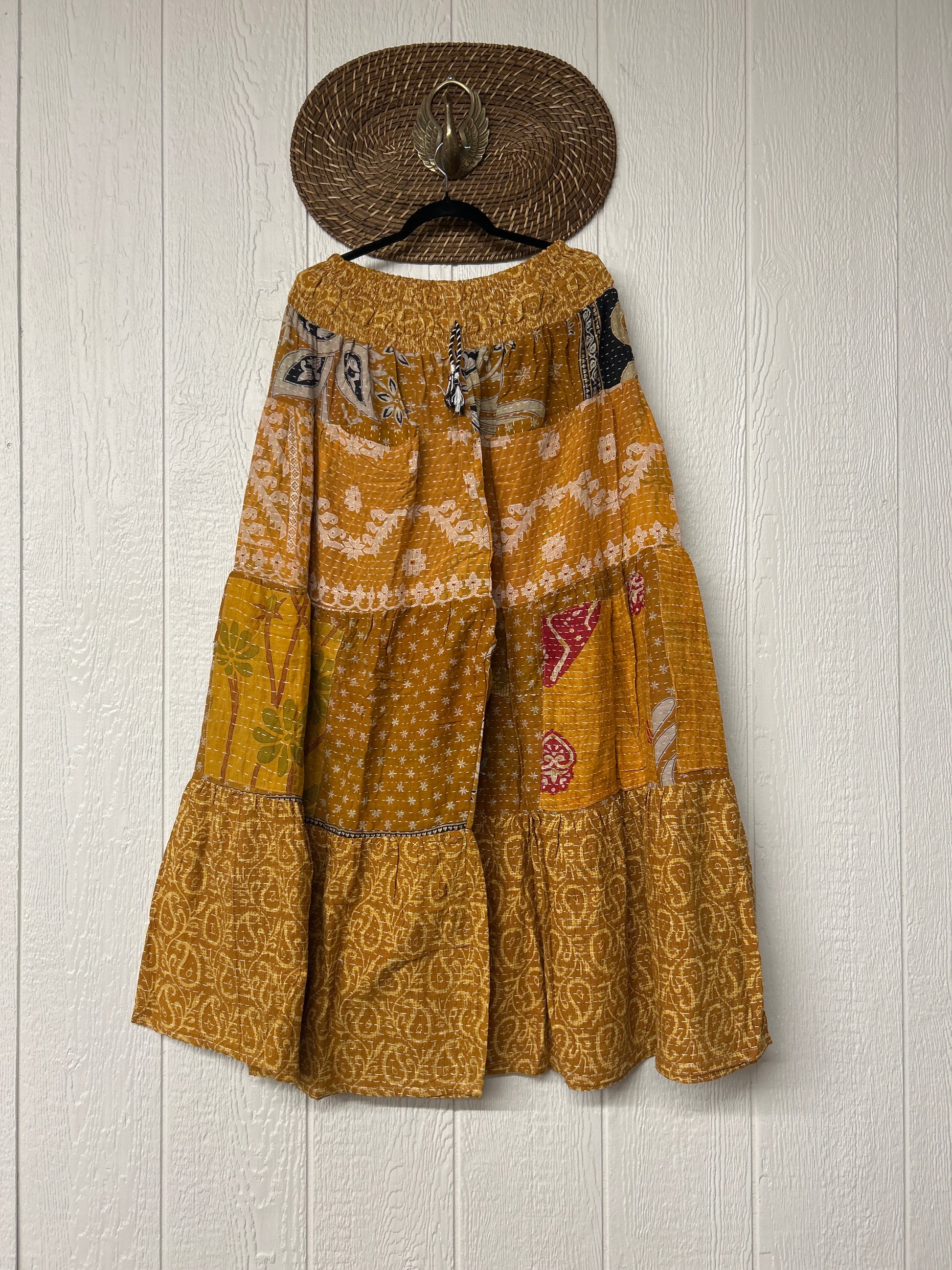 Crafted from our ultra lux Kantha stitched cotton sari, the bold design of the Lotus Wide Leg Pants features tiered wide legs for an exaggerated silhouette and a slouchy interior pocket that is absolute perfection!