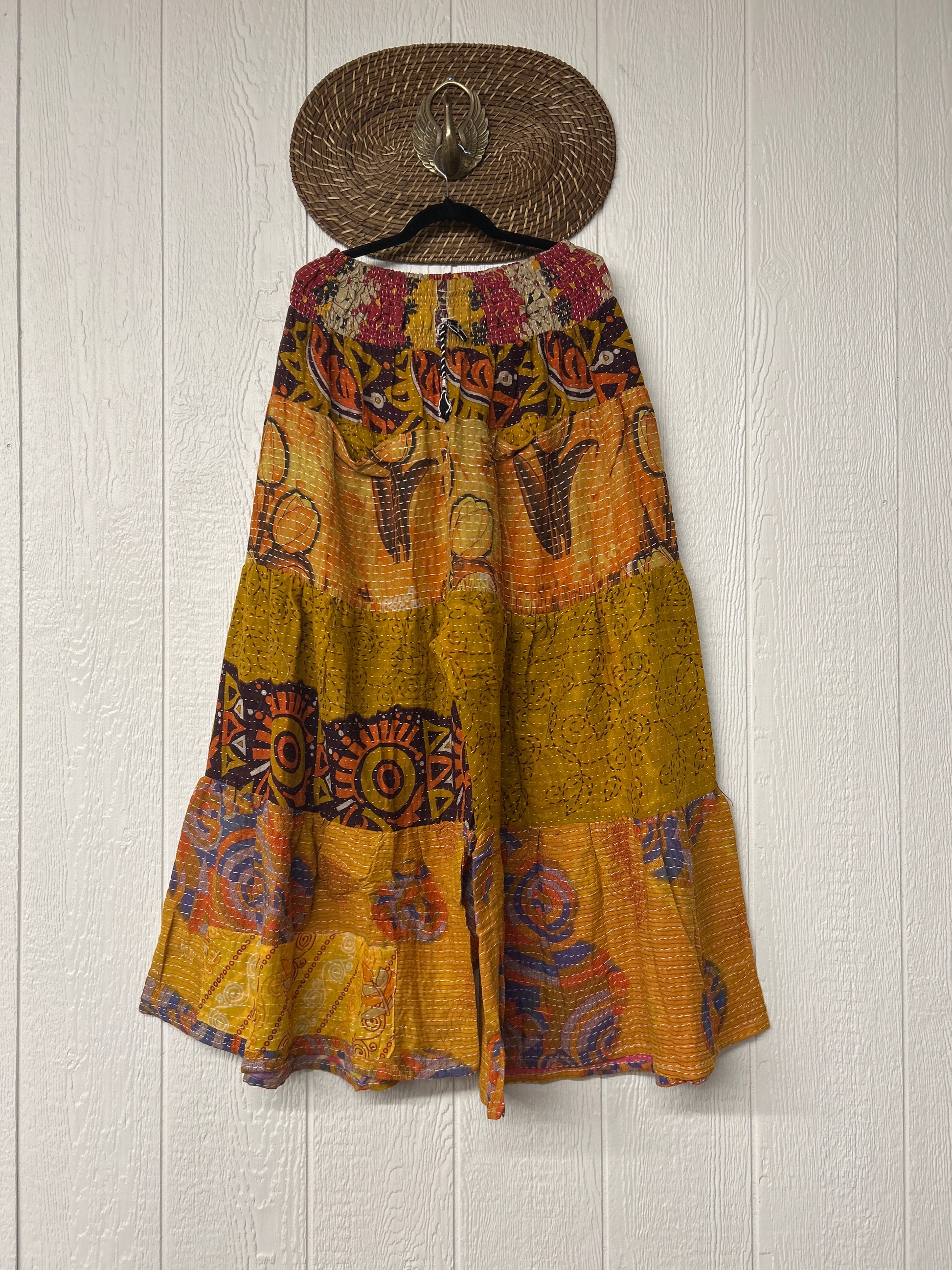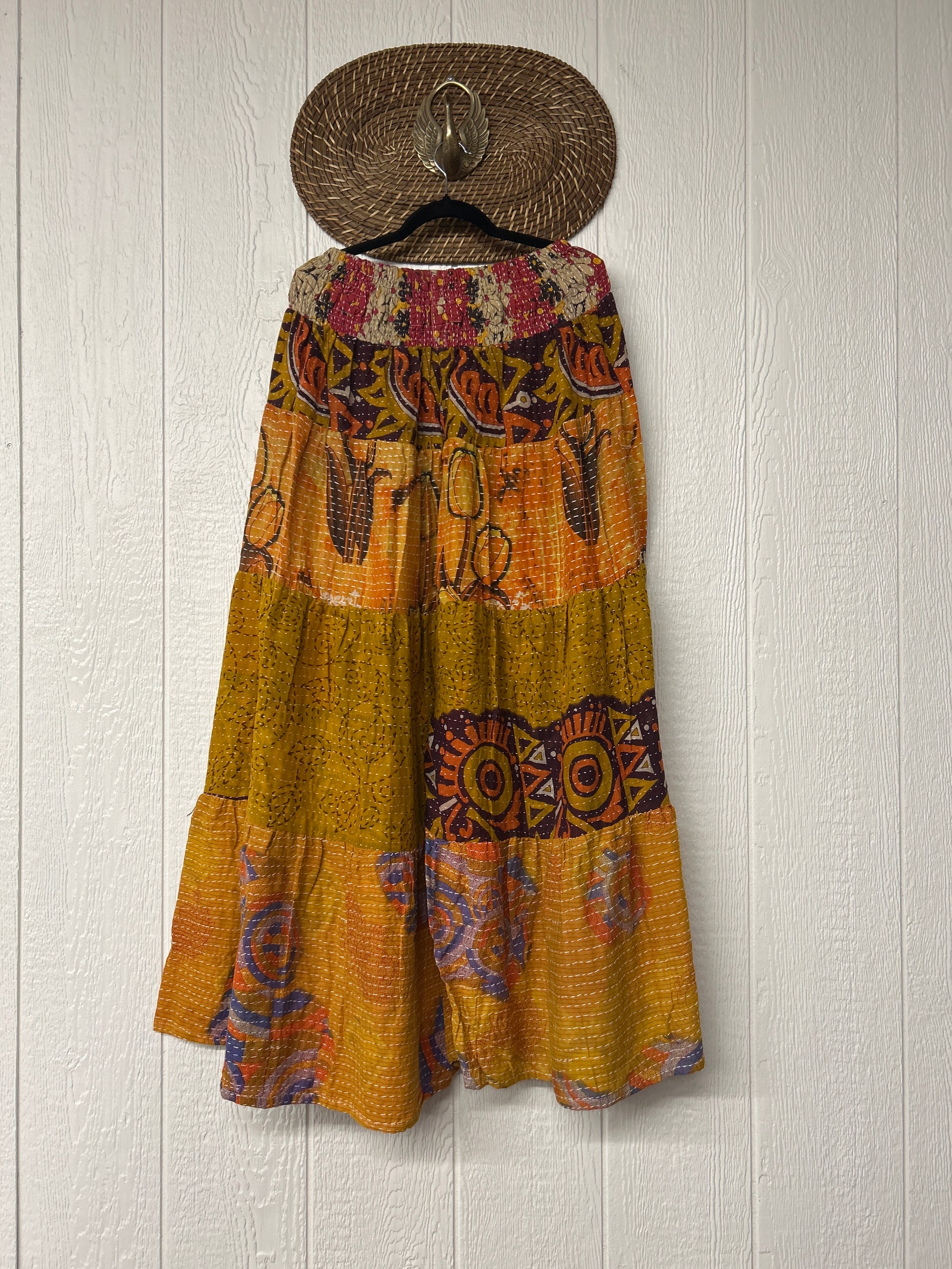 Crafted from our ultra lux Kantha stitched cotton sari, the bold design of the Lotus Wide Leg Pants features tiered wide legs for an exaggerated silhouette and a slouchy interior pocket that is absolute perfection!