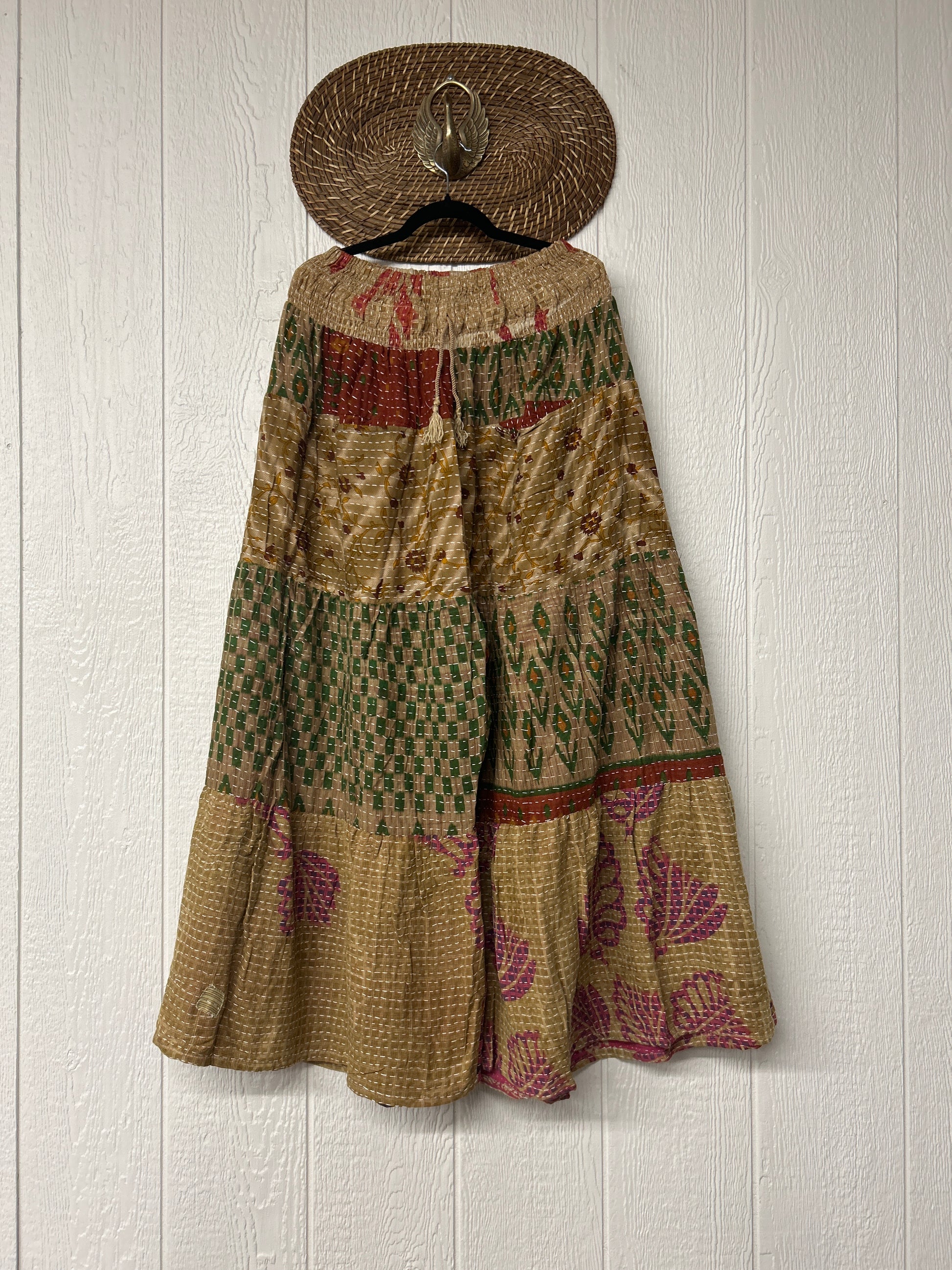 Crafted from our ultra lux Kantha stitched cotton sari, the bold design of the Lotus Wide Leg Pants features tiered wide legs for an exaggerated silhouette and a slouchy interior pocket that is absolute perfection!