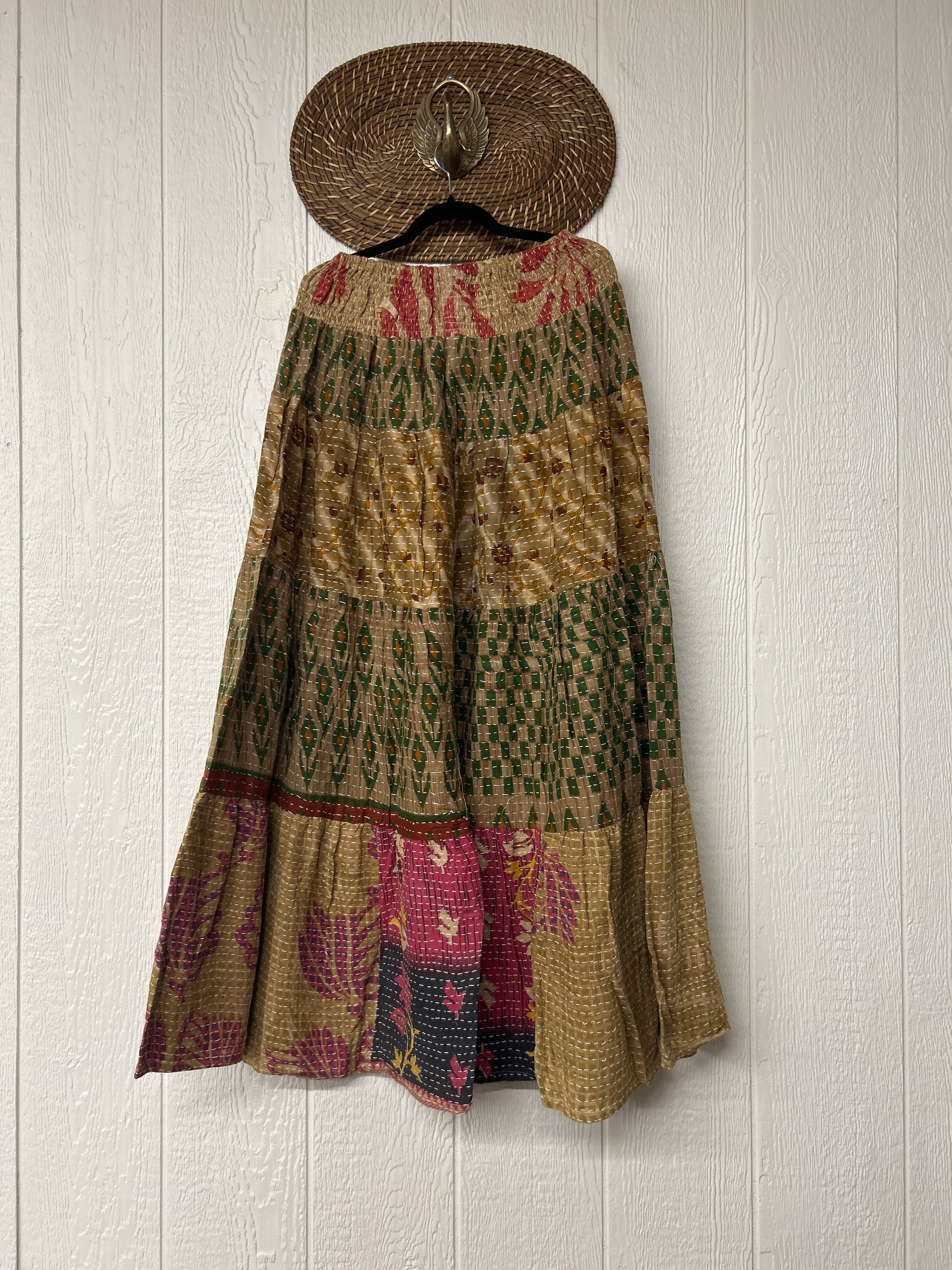 Disclosure: Our vintage styles have lived a full life before becoming the designs in our shop. Fabrics may have small threads or holes in the layers. Color inconsistency or small stains may be present. The saris are sewn together and extend the life of each design.