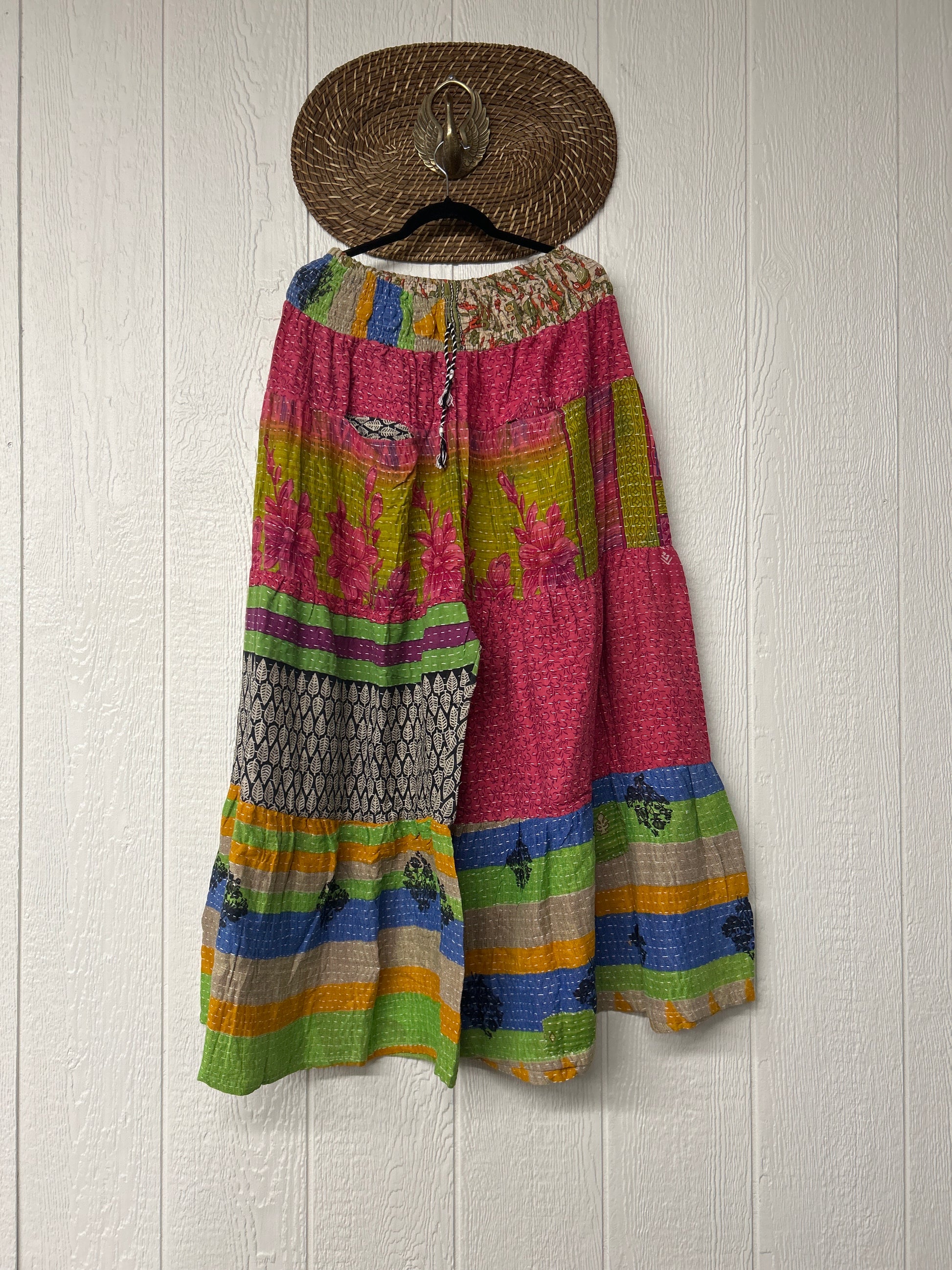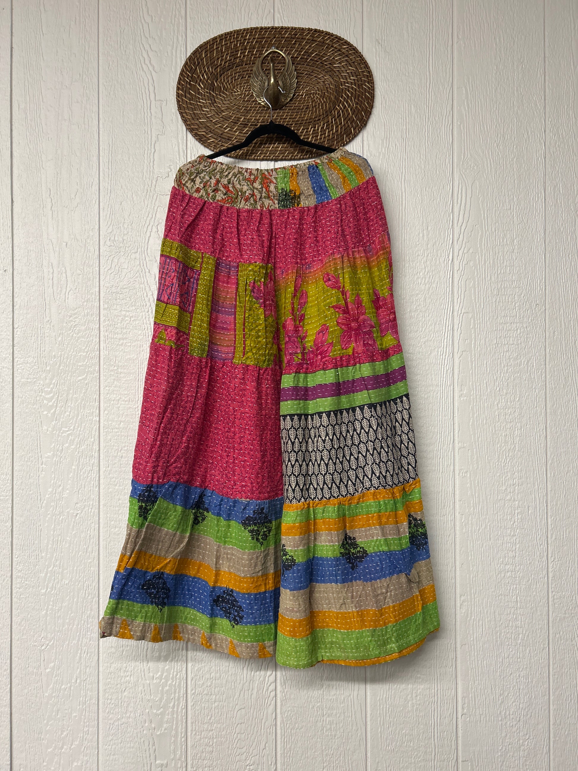 Crafted from our ultra lux Kantha stitched cotton sari, the bold design of the Lotus Wide Leg Pants features tiered wide legs for an exaggerated silhouette and a slouchy interior pocket that is absolute perfection!