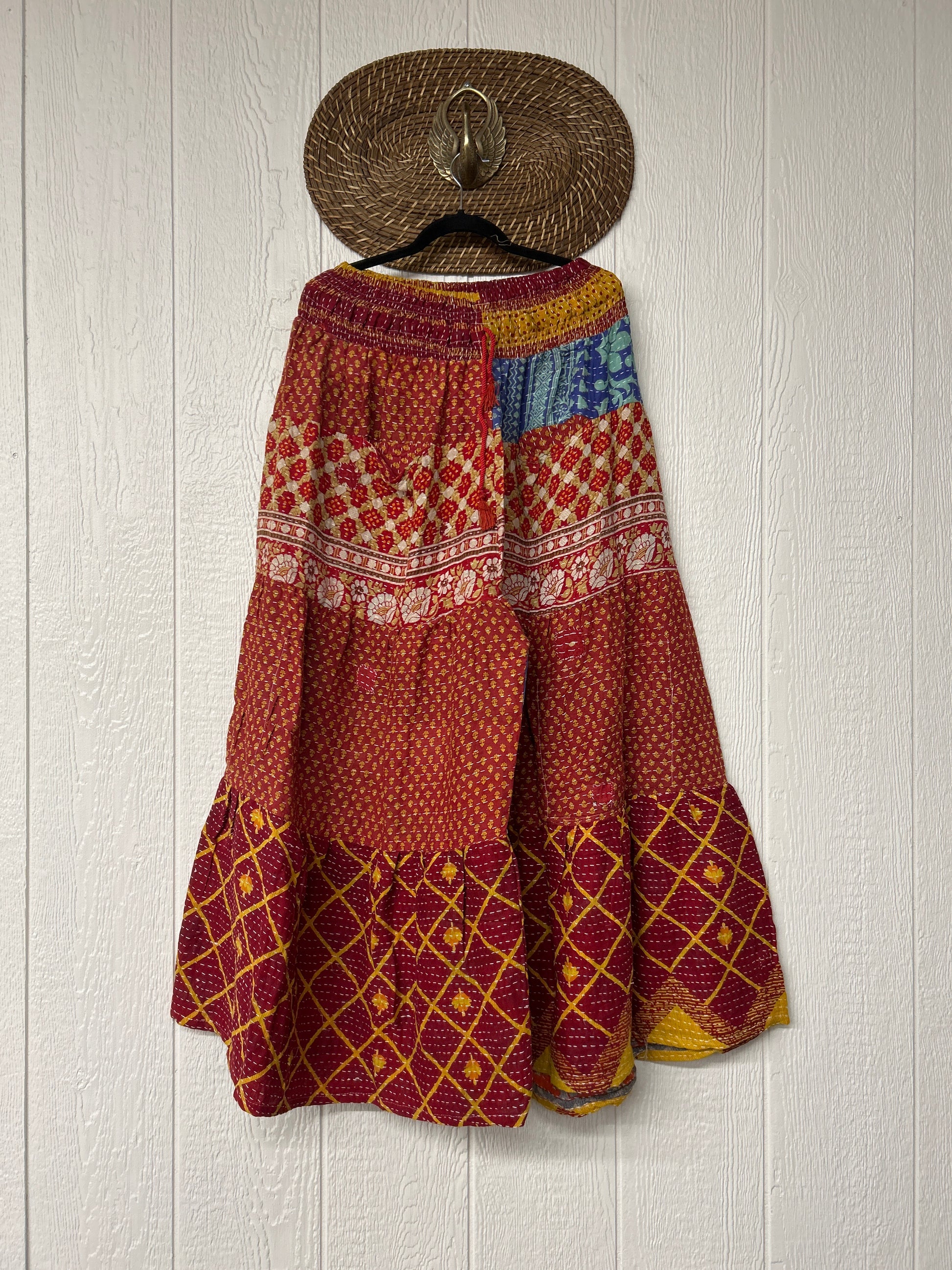 Crafted from our ultra lux Kantha stitched cotton sari, the bold design of the Lotus Wide Leg Pants features tiered wide legs for an exaggerated silhouette and a slouchy interior pocket that is absolute perfection!